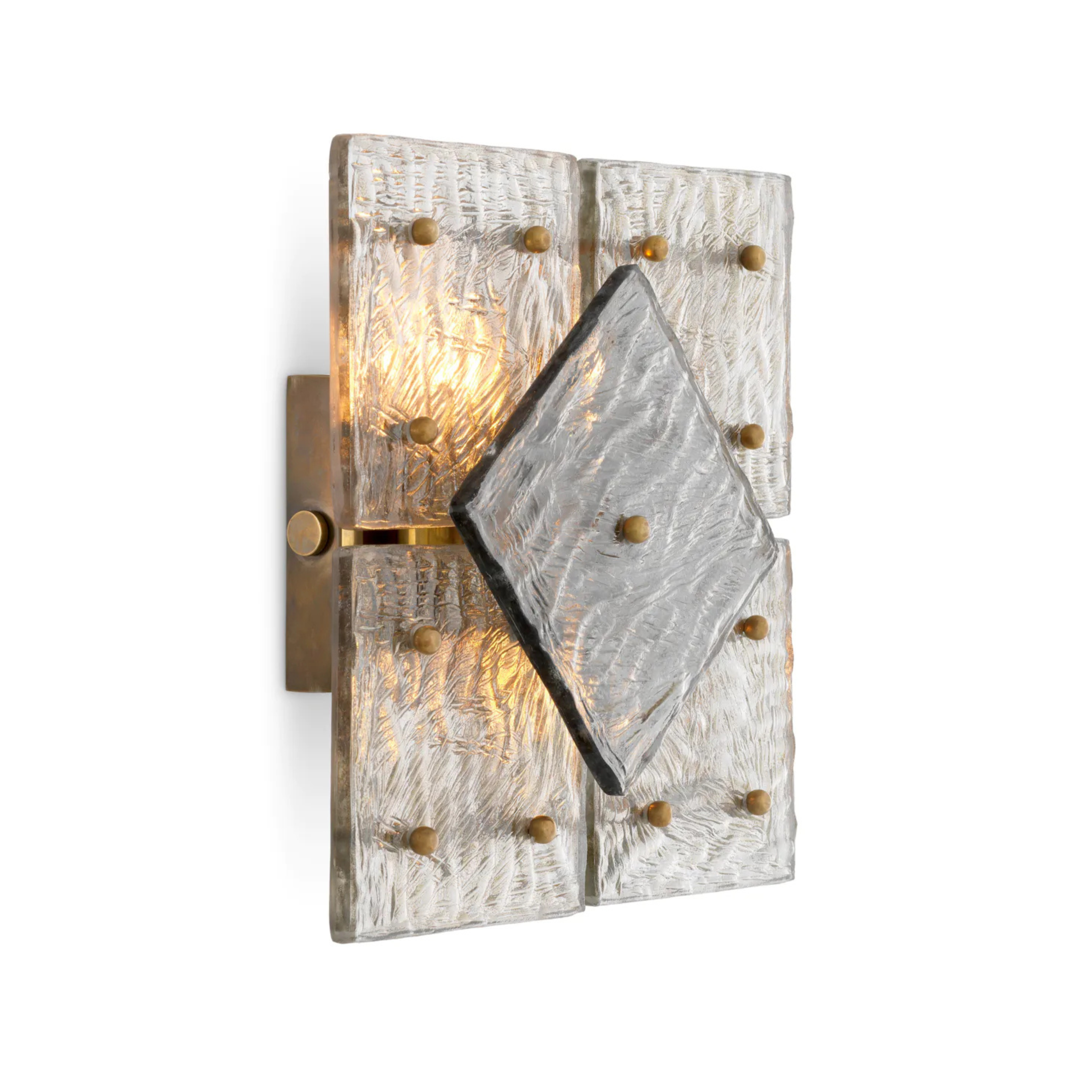 Nástěnné svítidlo Hestia je spojení řemeslné preciznosti a geometrické elegance. Vyrobeno z kovu s vintage mosazným povrchem a obklopeno panely z ručně foukaného skla, nástěnné svítidlo okouzluje vyváženým stylem a ušlechtilou formou. Teplé tóny mosazi a vrstvená konstrukce dodávají celku hloubku a jedinečný charakter, což z něj činí ideální volbu pro moderní, elegantní interiéry.