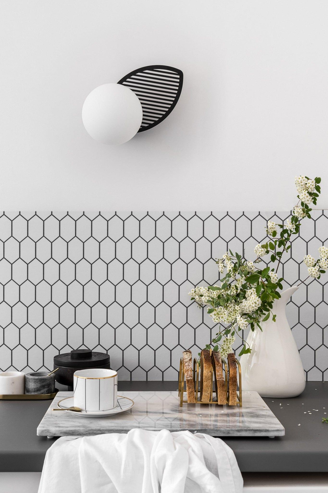 Moderní nástěnné svítidlo Fyllo ve své formě odkazuje na botanické motivy. Charakteristický kovový prvek umístěný přímo u žárovky připomíná tvarem list. Klasická černá barva dodává celé konstrukci eleganci a moderní design.