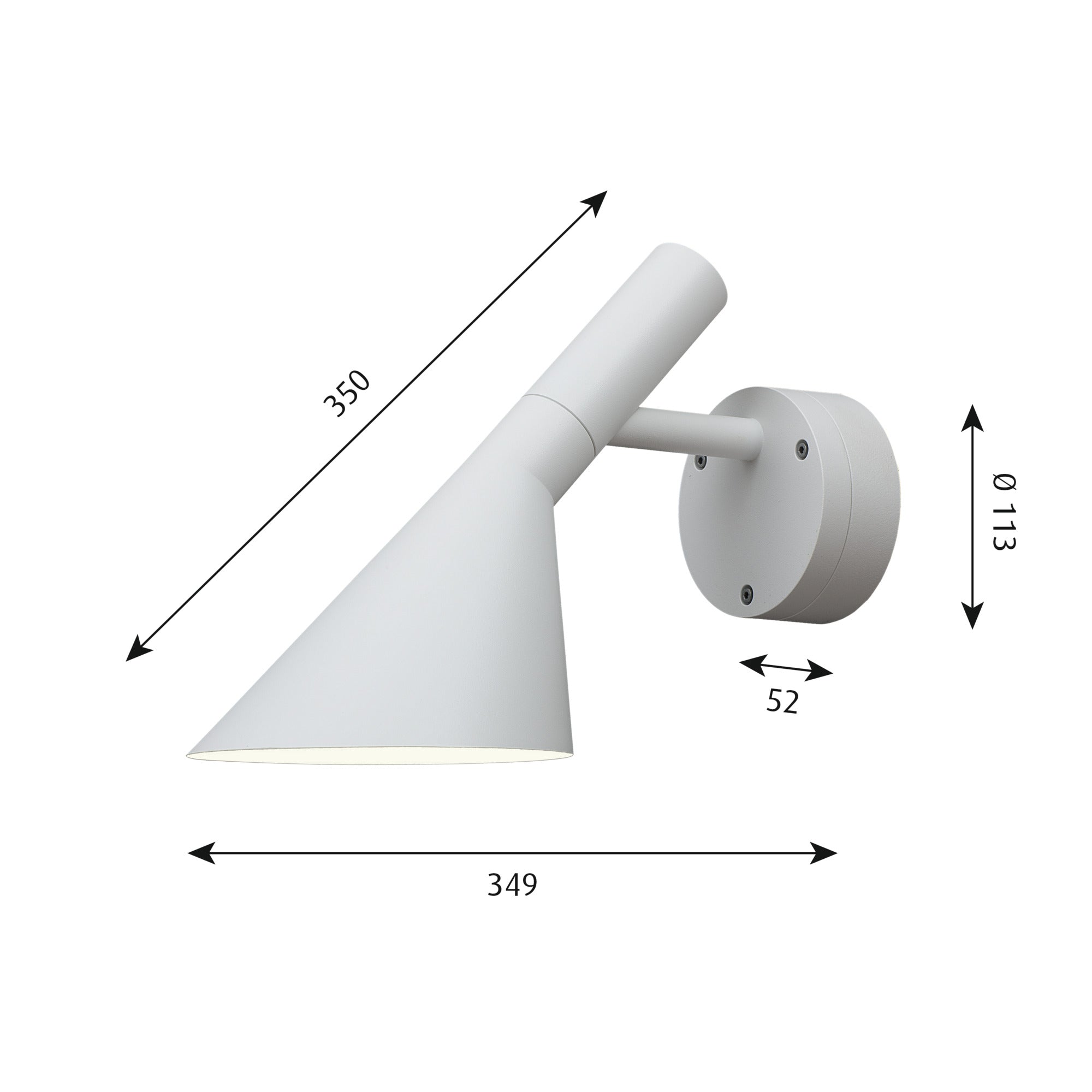Nástěnná lampa AJ 50 je elegantní a funkční lampa do exteriéru, navržená k příležitosti 50. výročí vzniku ikonické rodiny lamp AJ Arne Jacobsena. Na základě originálního designu vytvořeného pro hotel SAS Royal v Kodani vznikla verze přizpůsobená pro venkovní osvětlení, která zachovává charakteristickou, minimalistickou formu. Nástěnná lampa vyzařuje světlo směrem dolů, a bílý vnitřní stínidlo zajišťuje příjemné, měkké rozptýlení světla, ideální pro zvýraznění vstupů, teras, fasád a zahradních cest.