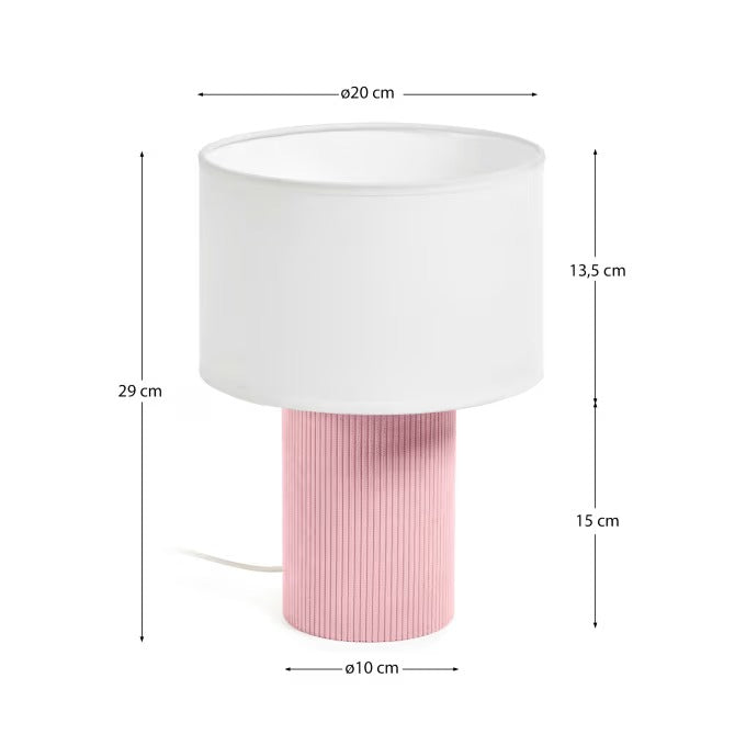 Lampa stołowa Bianella to połączenie nowoczesnego wzornictwa i subtelnej elegancji, idealne do stylowych wnętrz. Cylindryczna podstawa pokryta delikatnym, różowym sztruksem wprowadza przyjemną teksturę, a klosz z białej bawełny zmiękcza światło, tworząc przytulny nastrój. Dzięki temu lampa doskonale dopasowuje się zarówno do nowoczesnych, jak i klasycznych aranżacji, podkreślając ich charakter i dodając im harmonii.
