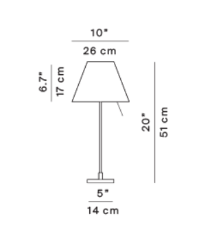Stolní lampa Costanzina je ikonou elegance a nadčasového designu, která díky své klasické formě skvěle zapadne do každého interiéru. Její charakteristický kuželovitý stínidlo z polykarbonátu, zavěšené na hliníkové konstrukci na dvou bodech, zajišťuje lehkost a subtilnost, a zároveň je nesmírně funkční – může se jemně houpat, ale nespadne. Díky vestavěnému, filigránovému vypínači umístěnému přímo na stínidle, je obsluha lampy mimořádně intuitivní.
