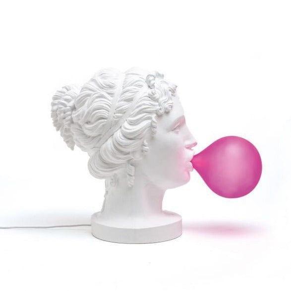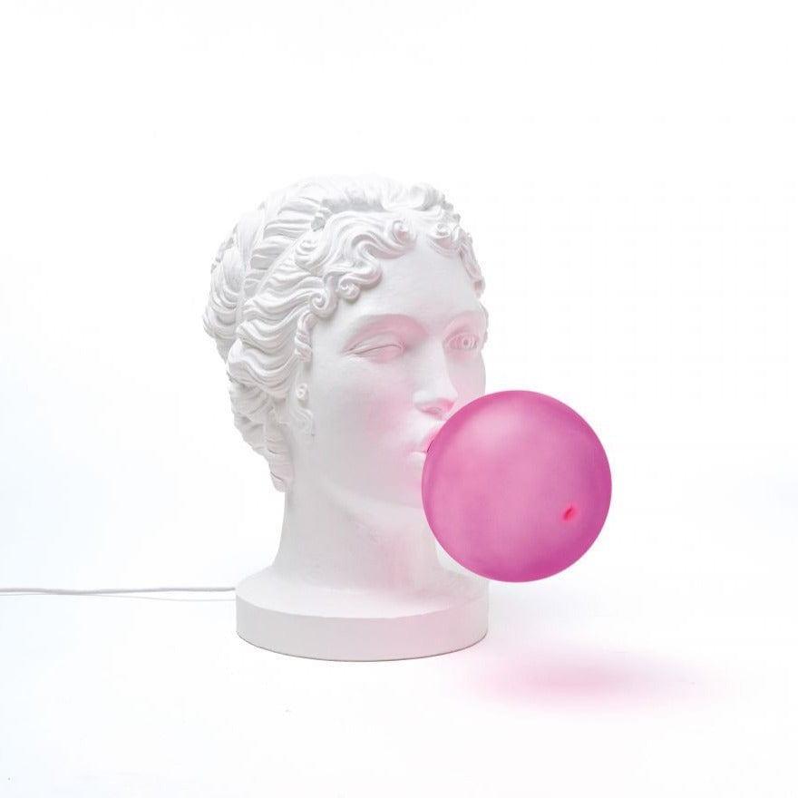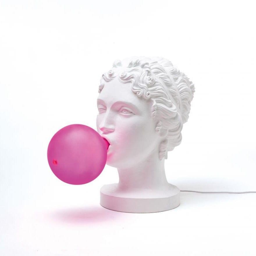 Dekorativní lampa Grace je ideálním doplňkem pro fanoušky avantgardy a neobvyklých řešení. Kombinace sochařského motivu jako z muzea, inspirovaného obrazem bohyně, s žárovkou připomínající růžovou žvýkačku, je jako spojení sakrálního s profánním.