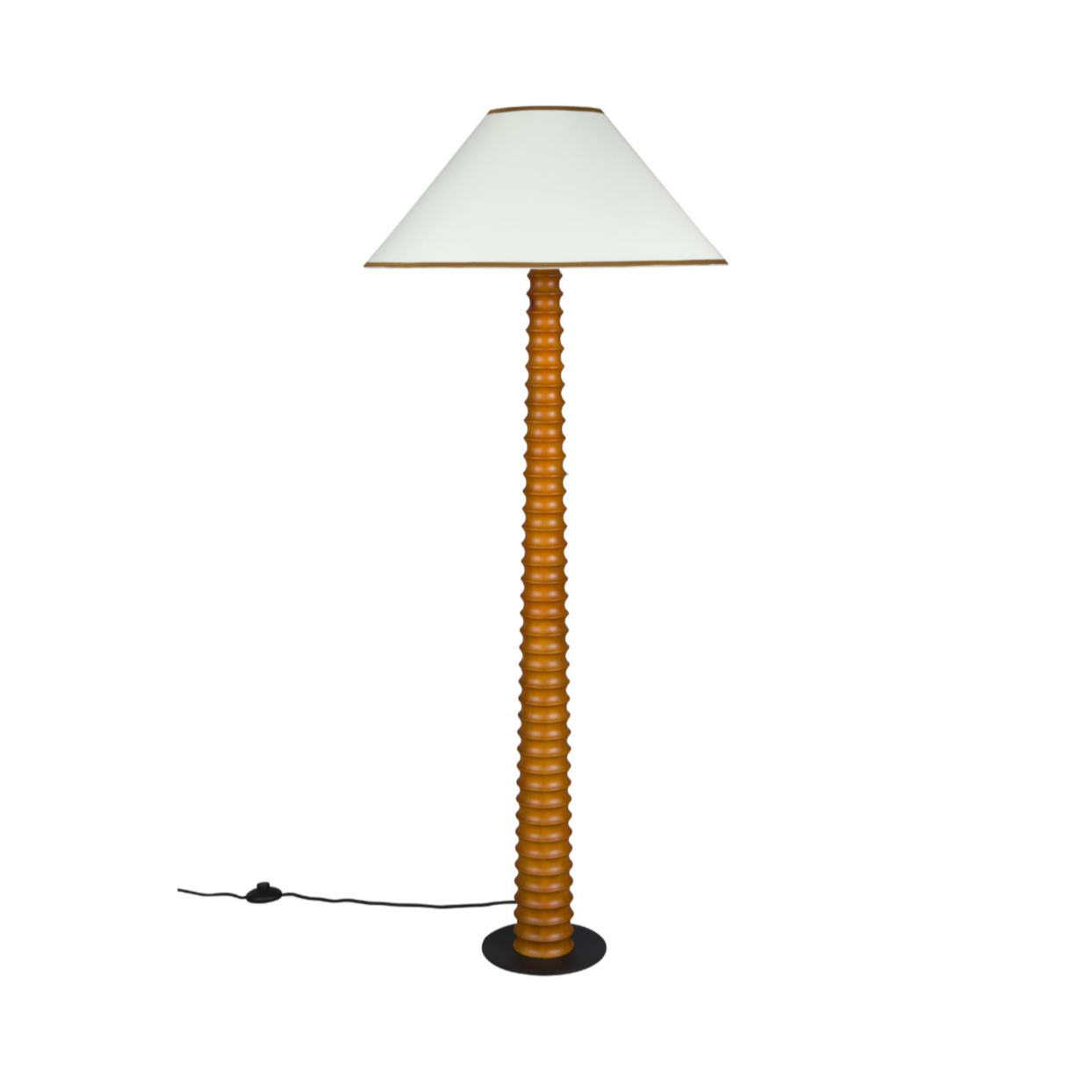 Stojací lampa HORACE z dubového dřeva s bavlněným stínidlem