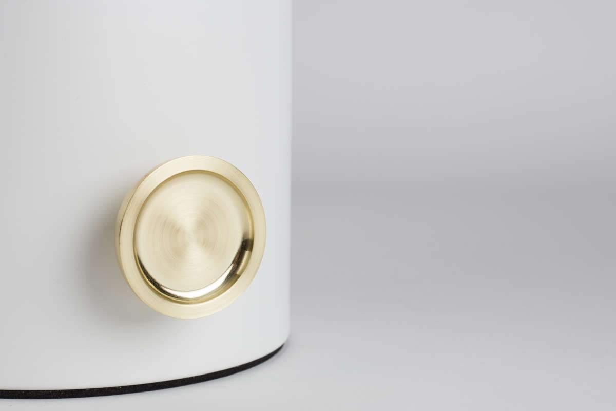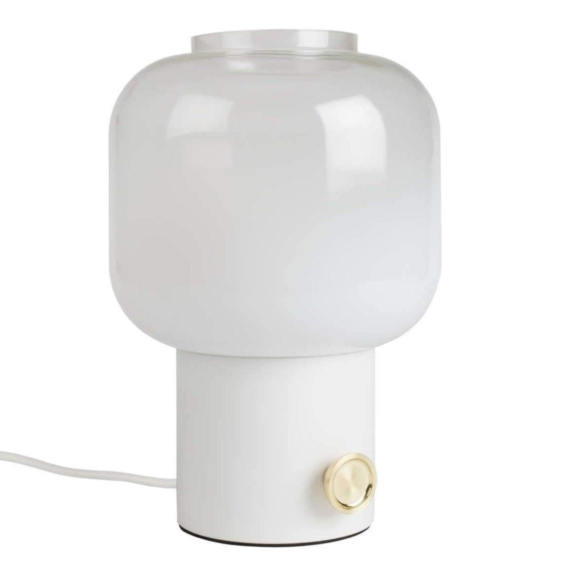 Skleněný stínidlo lampy Moody je těžké přehlédnout. Stojí za zmínku mosazný vypínač, který dodává celku eleganci. Barva vyzařovaného světla se mění v závislosti na vybrané žárovce, která musí mít možnost stmívání. Bílá lampa Moody se skvěle hodí téměř do každého stylu.