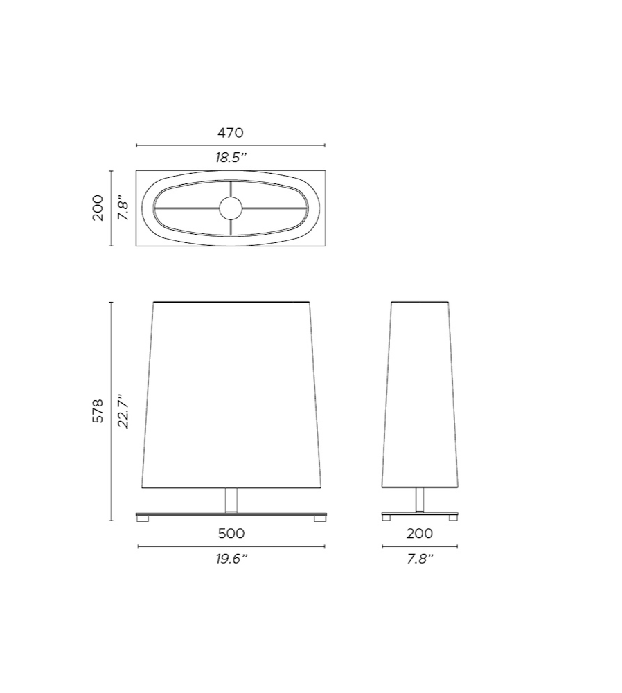 Ovale je stolní lampa charakterizující se geometrickým tvarem, obdélníky a ovály, které se vzájemně doplňují. Stínidlo může být vyrobeno z velmi příjemných na dotek látek: s mramorovým efektem nebo z bílé bavlny, pro dosažení couture efektu.