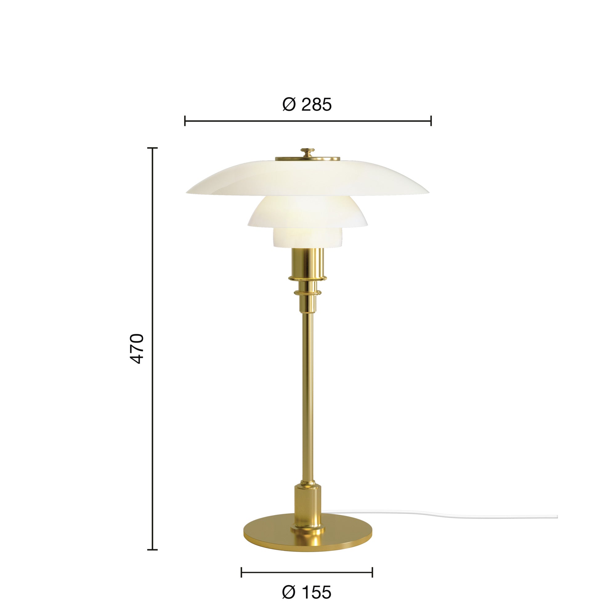 Stolní lampa PH 3/2 bílá s mosazným podstavcem