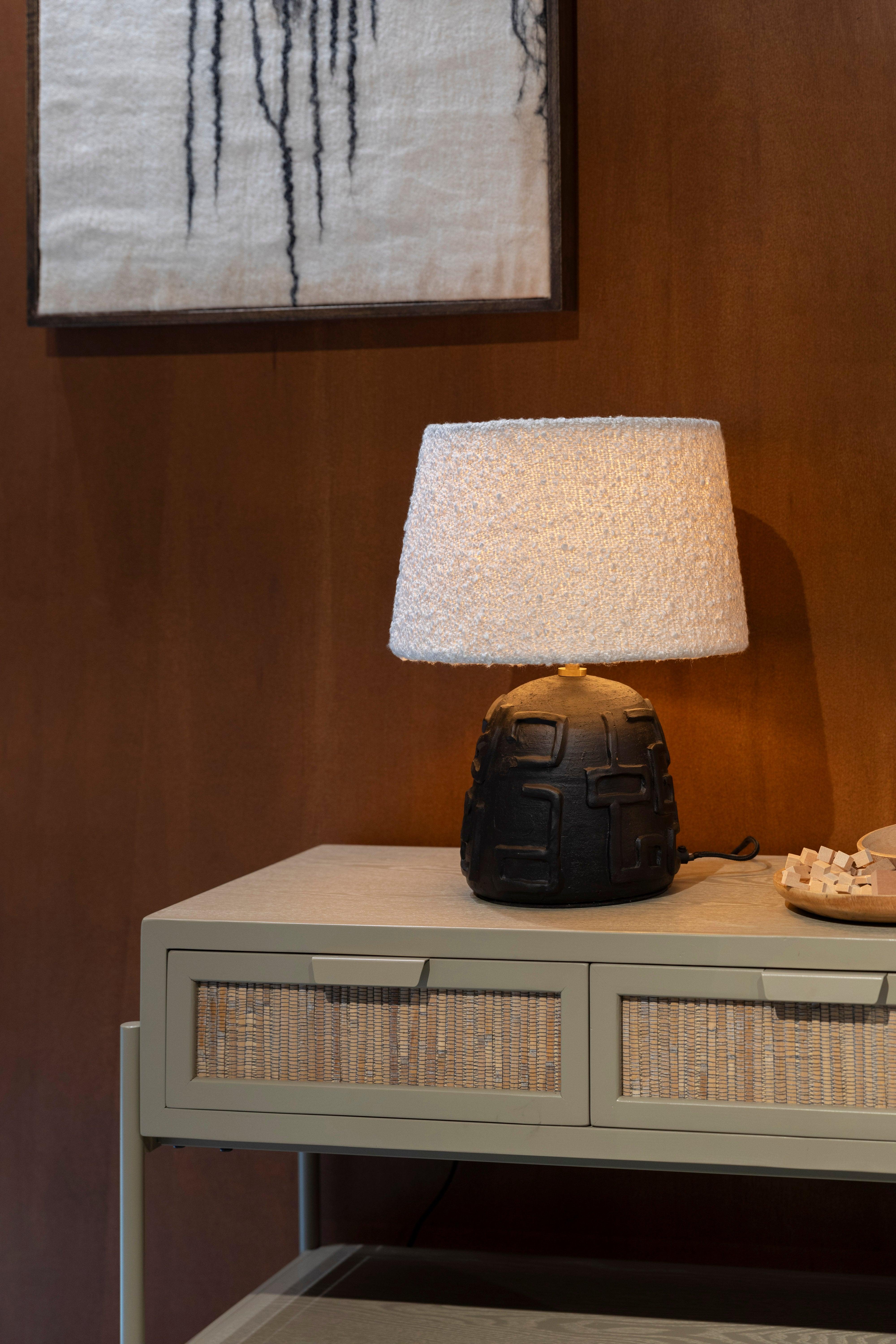 Stolní lampa Renzo upoutává pozornost svým jedinečným designem a atmosférou, kterou vnáší do interiéru. Černé prvky konstrukce kontrastují s bílým stínidlem vyrobeným z pevné vlnité lepenky, což jí dodává výjimečný charakter. Tento materiál je nejen estetický, ale také mimořádně odolný, poskytující teplé a jemné světlo.