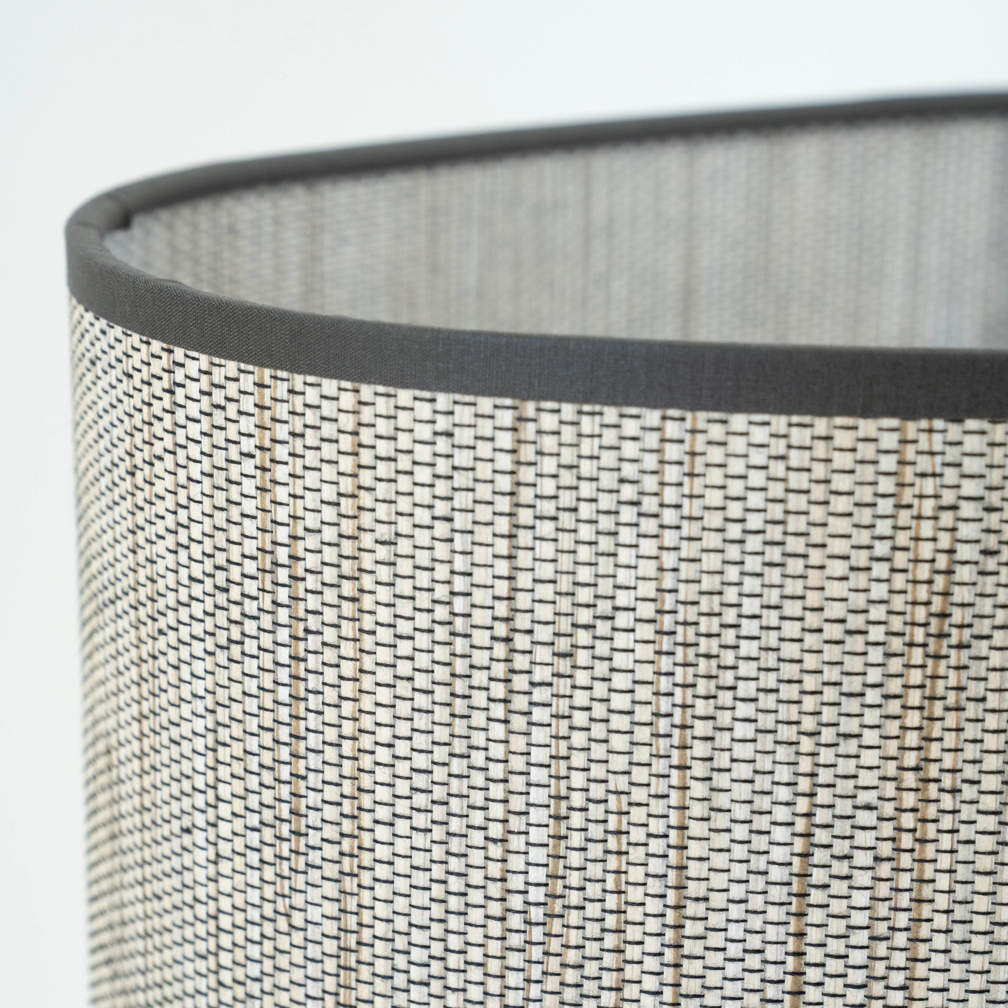 Lampa stołowa Shiboo to wyraziste połączenie naturalnej formy i nowoczesnego designu. Jej podstawa, wykonana z drewna, ma organiczny, rzeźbiarski kształt z centralnym otworem, co nadaje całości lekkości i niepowtarzalnego charakteru. Ciemne wybarwienie drewna kontrastuje z cylindrycznym kloszem w jasnoszarej tkaninie z delikatną fakturą, podkreślając elegancki i artystyczny styl lampy.