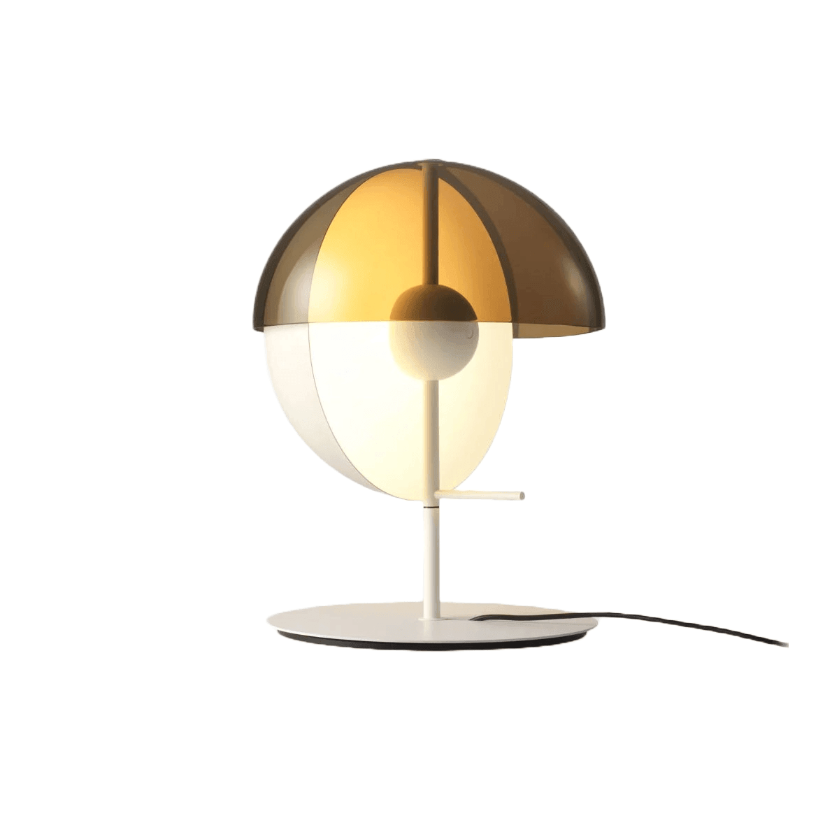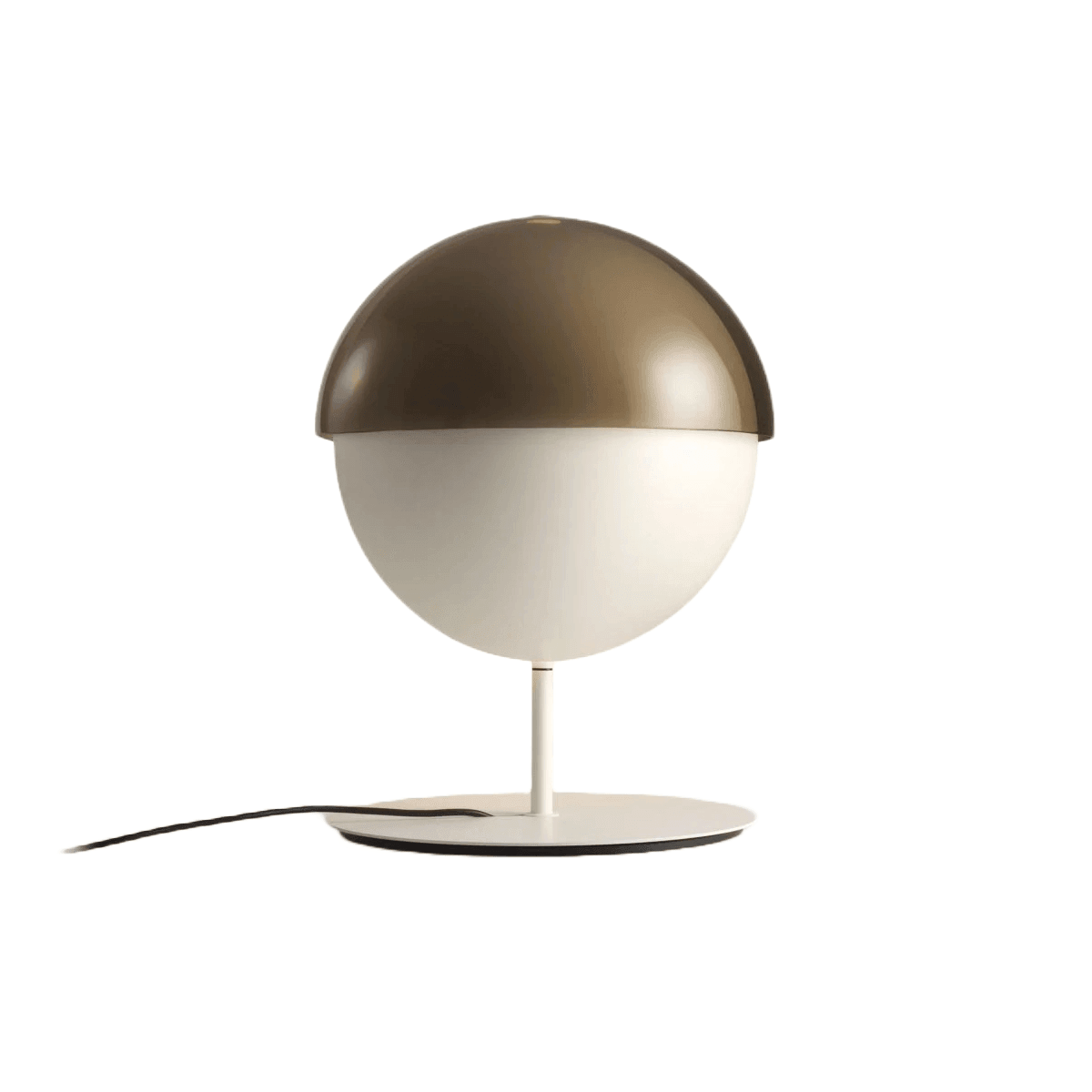 Theia má dvě tváře: abyste je objevili, stačí otočit svítidlo kolem jeho centrální osy. Můžete ji nasměrovat k sobě, abyste ji využili jako lampičku na čtení, nebo směrem k objektu či zdi, čímž vytvoříte jemné, rozptýlené světlo. Protože kovový stínidlo lampy Theia je zcela neprůhledné, tento rotační pohyb zcela mění vnímání tohoto prvku. Formální konstrukce lampy Theia je elementární a hladká: dvě polokoule, jedna umístěná horizontálně a druhá vertikálně, které se navzájem protínají.