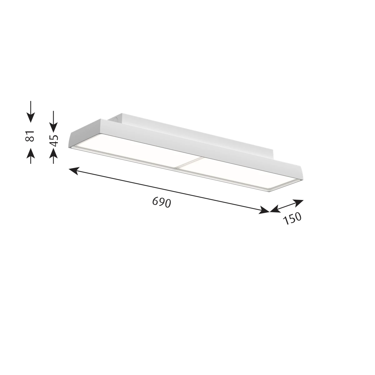 Designerska lampa sufitowa LP Slim Box wykorzystuje wydajny panel świetlny osłonięty dyfuzorem akrylowym, zapewniając równomierne, przyjemne światło skierowane głównie w dół. W zależności od wyboru dyfuzora – OPAL lub PRISMATIC – można uzyskać efekt miękkiego, rozproszonego oświetlenia lub bardziej precyzyjnego i kontrolowanego światła o mniejszym olśnieniu. Lampa może być montowana zarówno na suficie, jak i na ścianie, poziomo lub pionowo, co umożliwia dopasowanie do układu przestrzeni i podkreślenie jej geometrii.