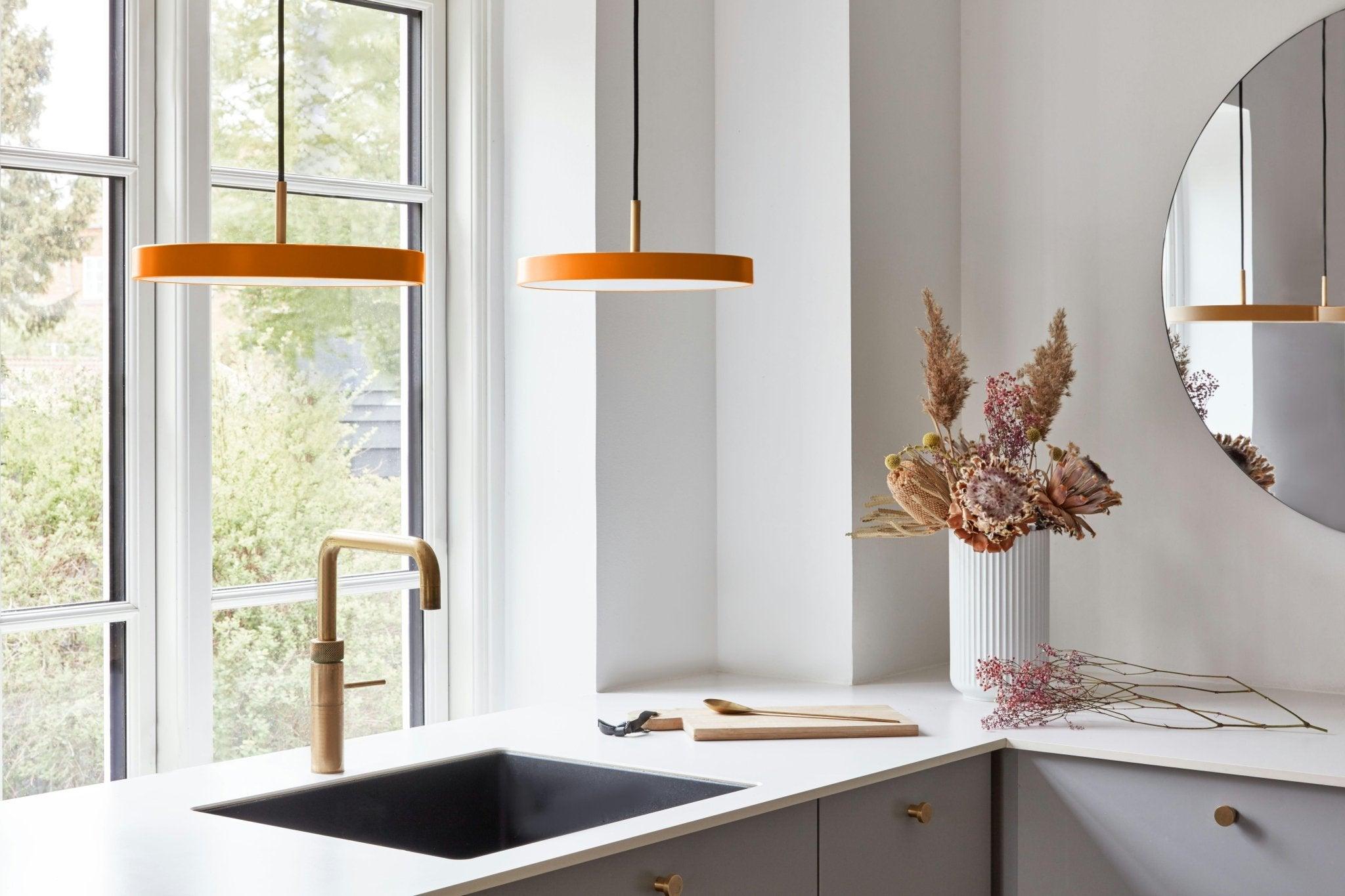 Varianty svítidla Asteria ve střední velikosti jsou k dispozici ve 13 různých barvách s mosaznými detaily, které lze snadno vyměnit za ocelové nebo černé, čímž svítidlu dodáte flexibilní vzhled, přizpůsobený vašemu individuálnímu stylu.