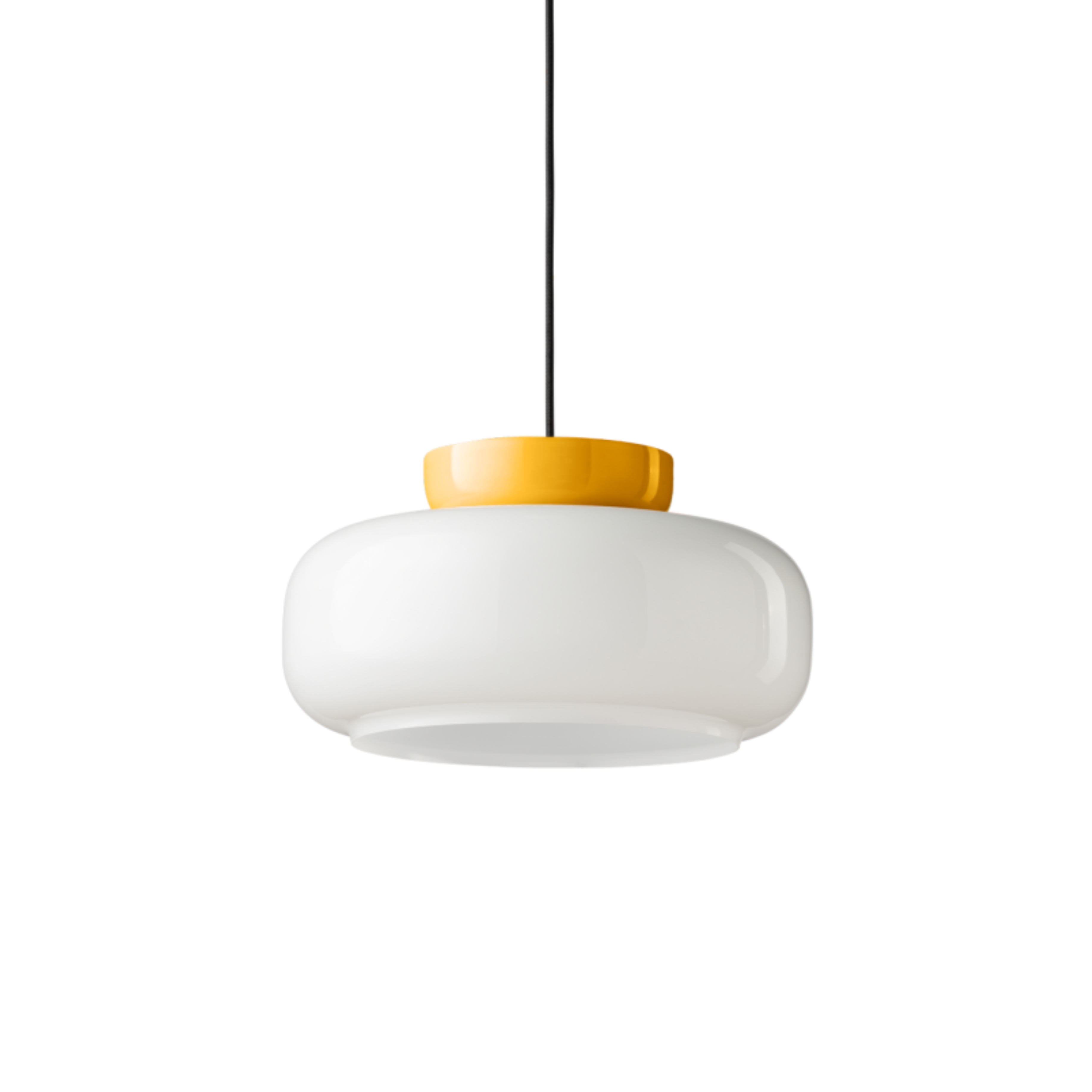 Závěsná keramická lampa MARACANÀ mléčná se žlutou barvou