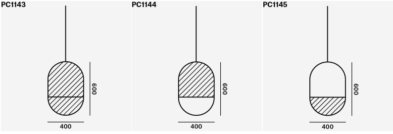 Prvky zavěšení lampy tvoří geometrické tvary s černými profily, které se skvěle kombinují s oválnými stínidly. Tato světla mohou fungovat samostatně nebo být kombinována do větších kompozic, vytvářející různé kombinace osvětlení, které se ideálně hodí k potřebám moderní architektury. Pro ještě větší personalizaci mají zákazníci možnost vybrat si barvu skla pro každou sekci lampy, což umožňuje vytvořit jedinečné, personalizované světelné instalace.