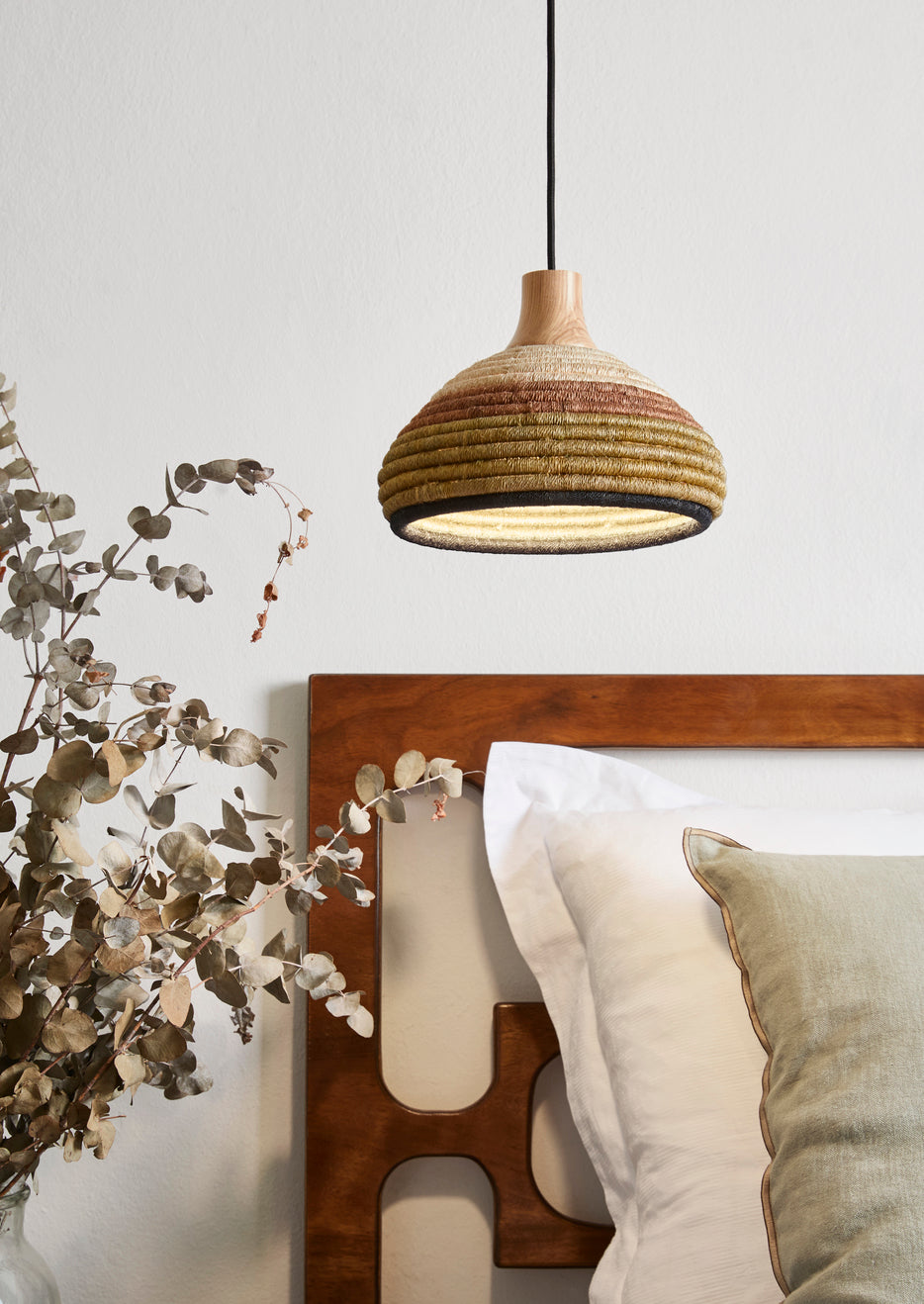 Závěsné svítidlo Grass je jedinečný projekt Jette Scheib, který harmonicky spojuje přírodní materiály s tradičním řemeslem. Ručně vyrobený stínidlo z ratanu a abaky, rostliny pocházející z východní Asie, okouzluje svým organickým vzhledem a přírodními odstíny. Zelené závěsné svítidlo přináší do interiéru teplo a útulnost, ideálně se hodí do obývacího pokoje, jídelny nebo ložnice. Stínidlo se skládá z překrývajících se pásů, které vytvářejí jedinečnou texturu, a vnitřní difuzor zajišťuje rovnoměrné, neoslňující světlo.