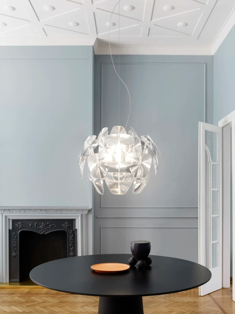 Projekt Hope byl vytvořen Francisco Gomézem Pazem a Paolem Rizzattem pro značku Luceplan s cílem maximálně využít efekt odrazu a rozptýlení světla. Polykarbonátové plátky, z nichž se skládá stínidlo, vytvářejí lehký, ale působivý design, který se skvěle hodí do moderních interiérů. Díky modulární konstrukci svítidlo je nesmírně snadné na montáž a demontáž, což dále zdůrazňuje jeho funkčnost a inovativní charakter.