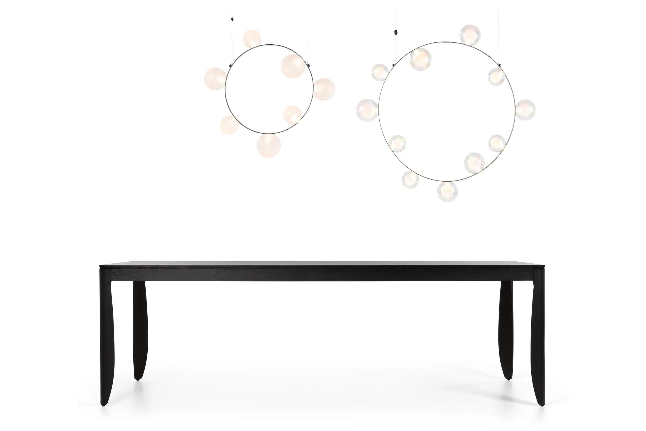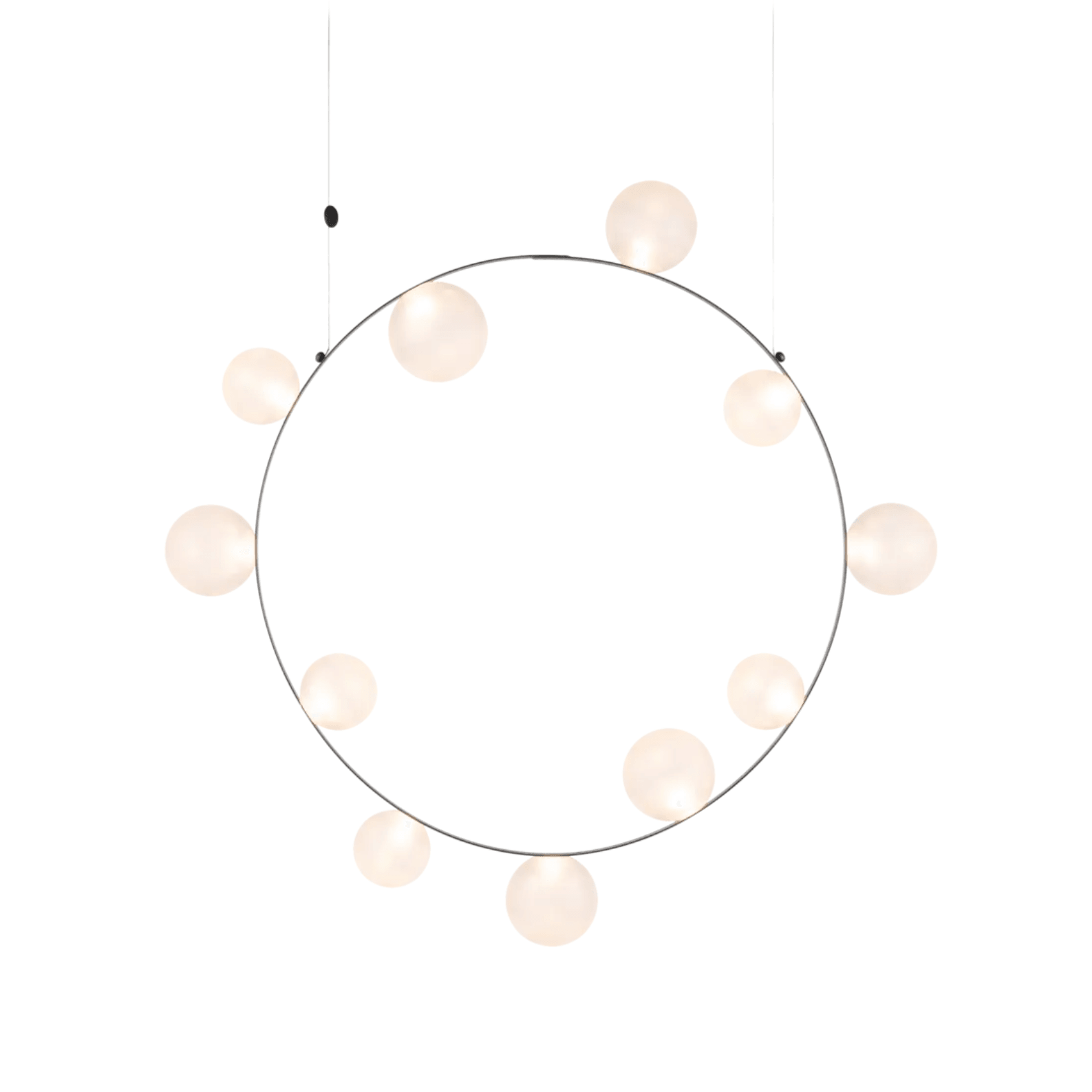 Závěsné svítidlo Hubble Bubble, vytvořené Marcelem Wanders, je prostorným a radostným doplňkem do každého interiéru. Dostupné ve dvou velikostech, s 7 nebo 11 skleněnými baňkami LED, nabízí opalizující olejový nebo matný povrch. Možnost zavěšení jak horizontálně, tak vertikálně umožňuje přizpůsobit lampu jakékoli aranžaci.