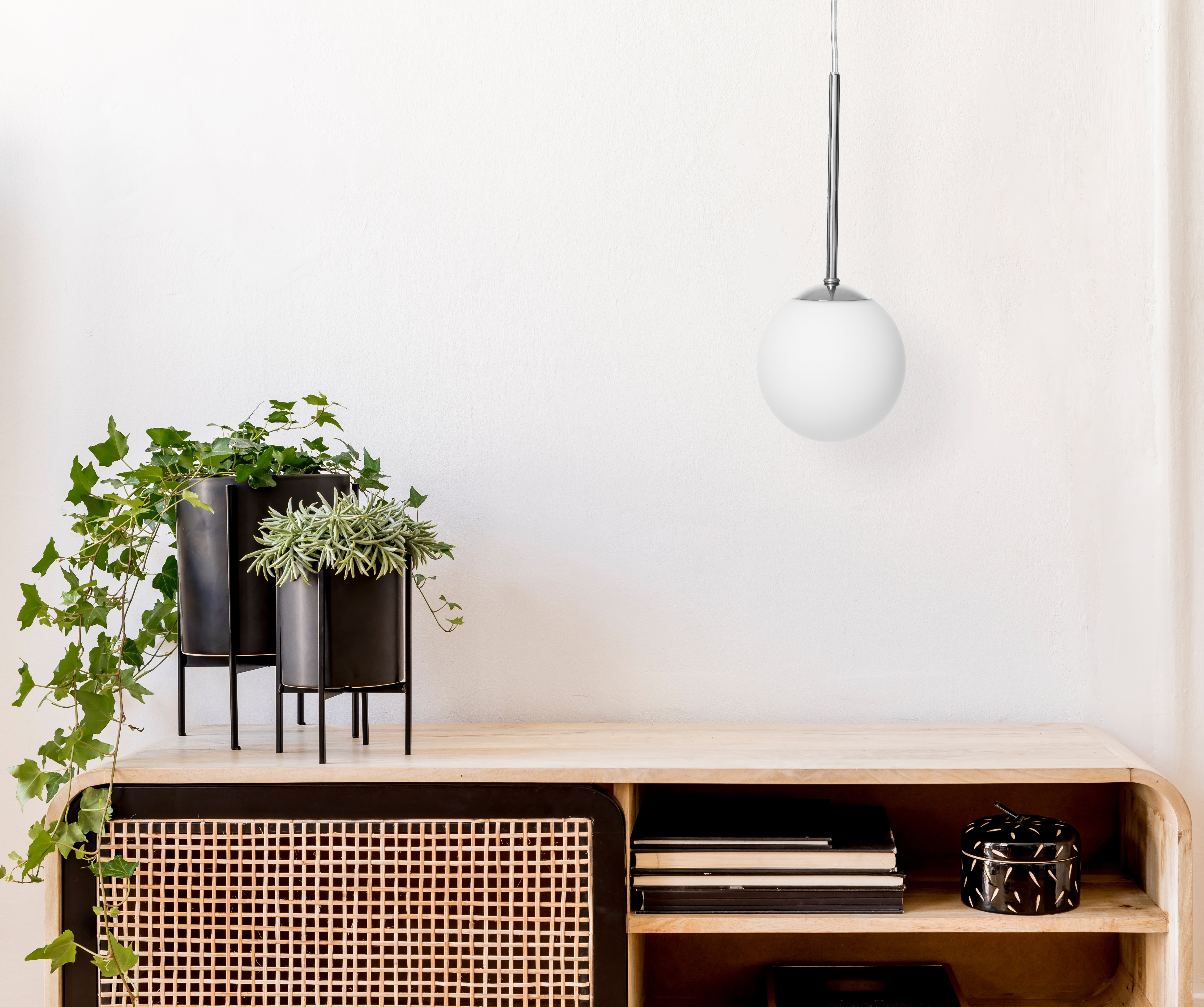 Lampa wisząca Lamia to połączenie subtelnej elegancji z nowoczesnym minimalizmem. Prosta forma kulistego, białego klosza o średnicy 12 cm została osadzona na smukłej tulejce w eleganckim, chromowanym wykończeniu. Uwagę przyciąga transparentny przewód, który wydobywa lekkość projektu i podkreśla jego dyskretny, współczesny charakter. To oprawa idealna dla wnętrz, w których liczy się światło i detal.