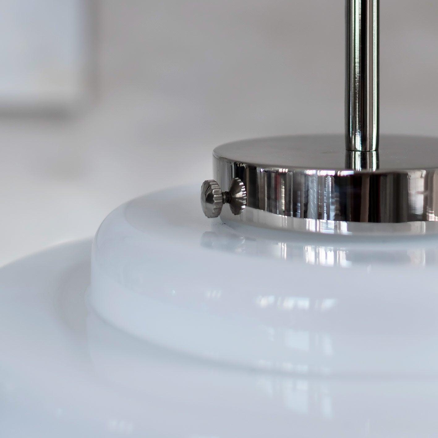 Wykonanie klosza Mémoire powierzone zostało lokalnym polskim hutnikom, którzy w tradycyjny sposób wydmuchali mlecznobiały klosz. Dzięki trójwarstwowemu szkłu opalowemu światło nabiera niebywałej miękkości i tworzy niezwykle sensualny, kojący nastrój. Całokształt zwieńczony jest deklem wykonanym z niklu.