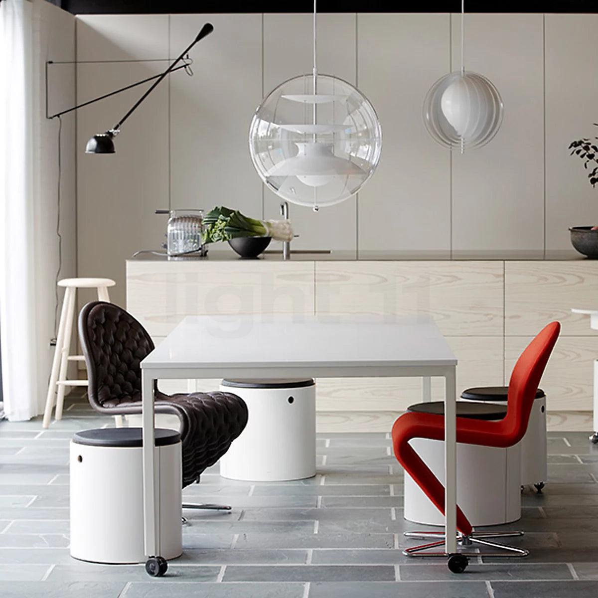 Navzdory svému minimalistickému vzhledu, bílá lampa Akrylová koule má jednu charakteristickou vlastnost, která je typická pro většinu Pantonových návrhů - malou, subtilně umístěnou skvrnu červené, viditelnou pouze zespodu svítidla. Tato malá dodatečná nota barvy mu dodává elegantní a klasický vzhled, který se hodí do každého interiéru. Lampa koule může být používána jako samostatný světelný bod nebo ve skupinách, aby vytvořila jedinečné a zajímavé kompozice, které dodávají prostoru originální styl a kouzlo.