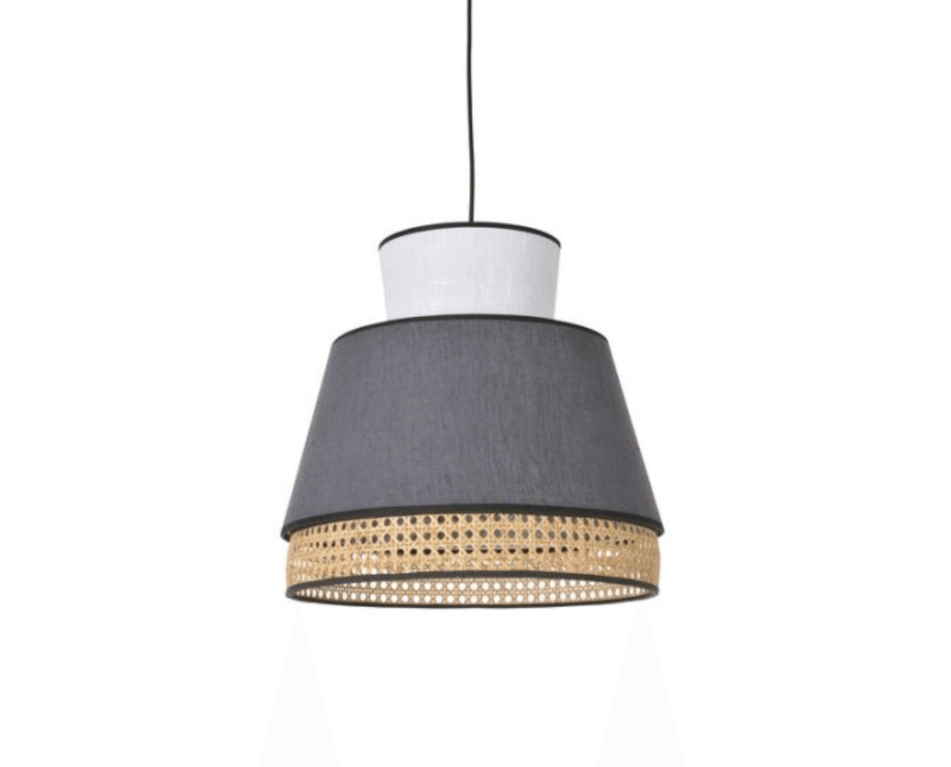 Závěsná lampa Singapour v antracitové barvě se skládá ze sady tří stínidel vyrobených z vybledlého lnu a vrbového proutí. Má textilní kabel a kovový roh s možností přizpůsobení DCL, což zajišťuje flexibilitu montáže a regulace osvětlení.