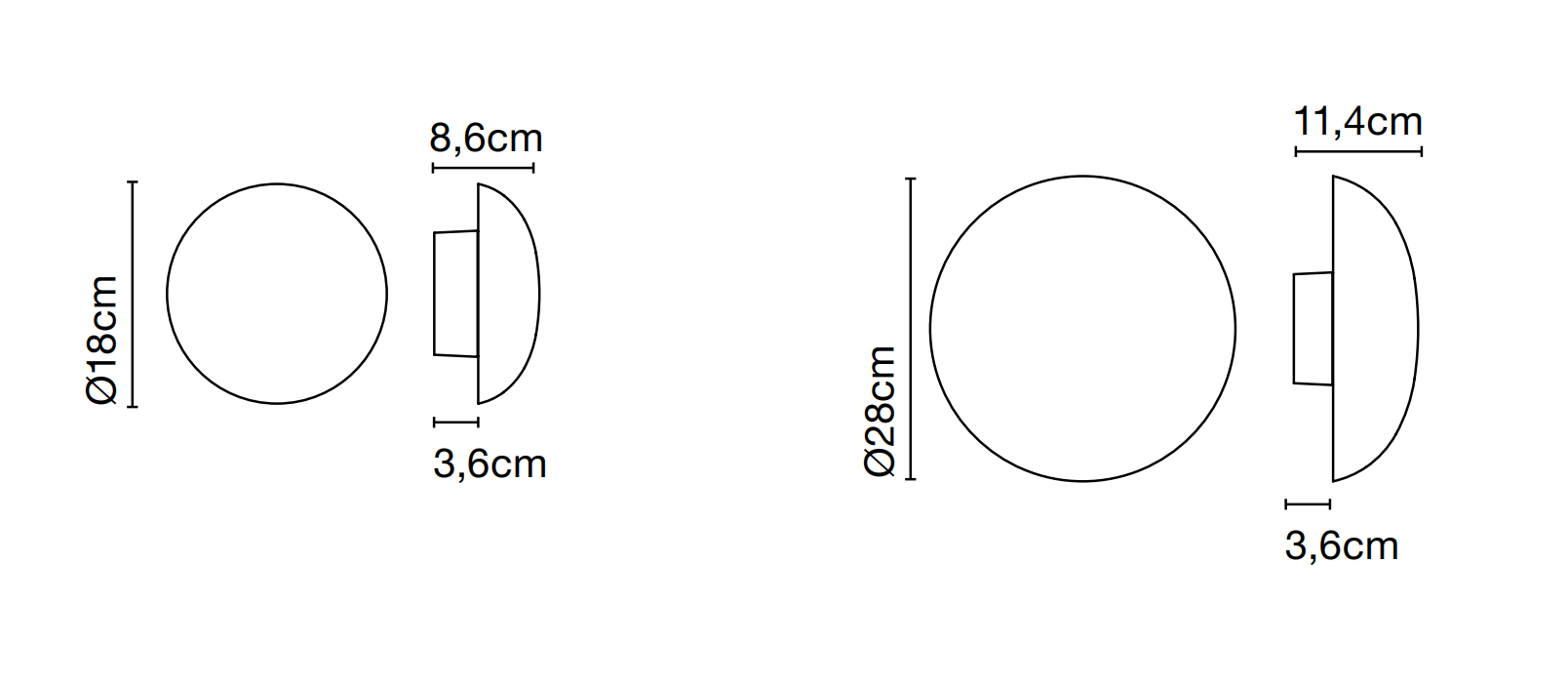 Babila je k dispozici ve dvou velikostech, o průměru 18 a 28 cm, a také v matném bílém nebo hnědém lakovaném hliníku, které představují diskrétnější alternativu k chromovanému povrchu. Ve všech variantách vytváří aura rozptýleného světla, detail kontrastující s materiálem. Jeho osvětlení je nepřímé, měkké na stěně a dobře integrované do venkovních prostor.