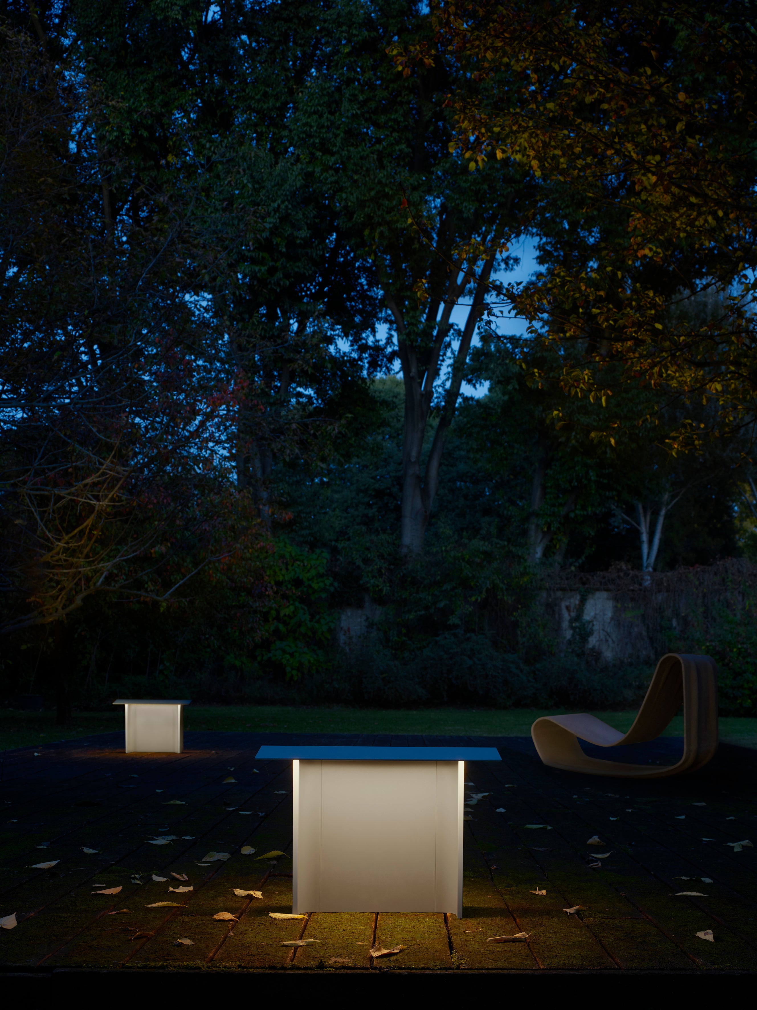 Lampa je k dispozici ve dvou výškách – 32 cm a 72 cm – a ve dvou elegantních barvách: světle šedé a tmavě šedé. Difuzor z polykarbonátu umístěný pod střechou rovnoměrně rozptyluje LED světlo dolů, což zajišťuje měkké, atmosférické osvětlení venkovních prostor. Díky stmívání DALI si uživatel může přizpůsobit intenzitu světla svým potřebám, což činí Fienile dokonalým doplňkem do zahrad, na terasy a do krajinné architektury.