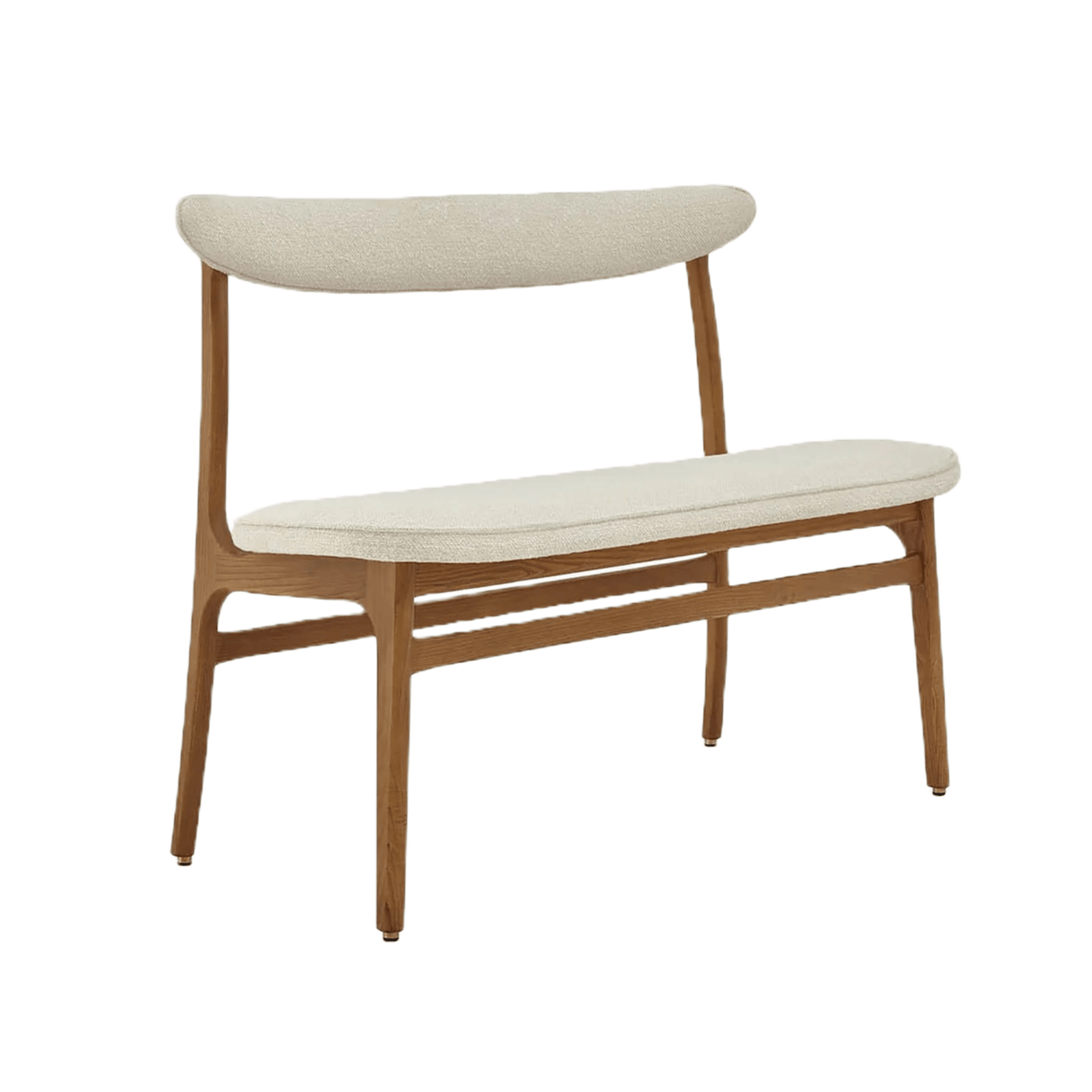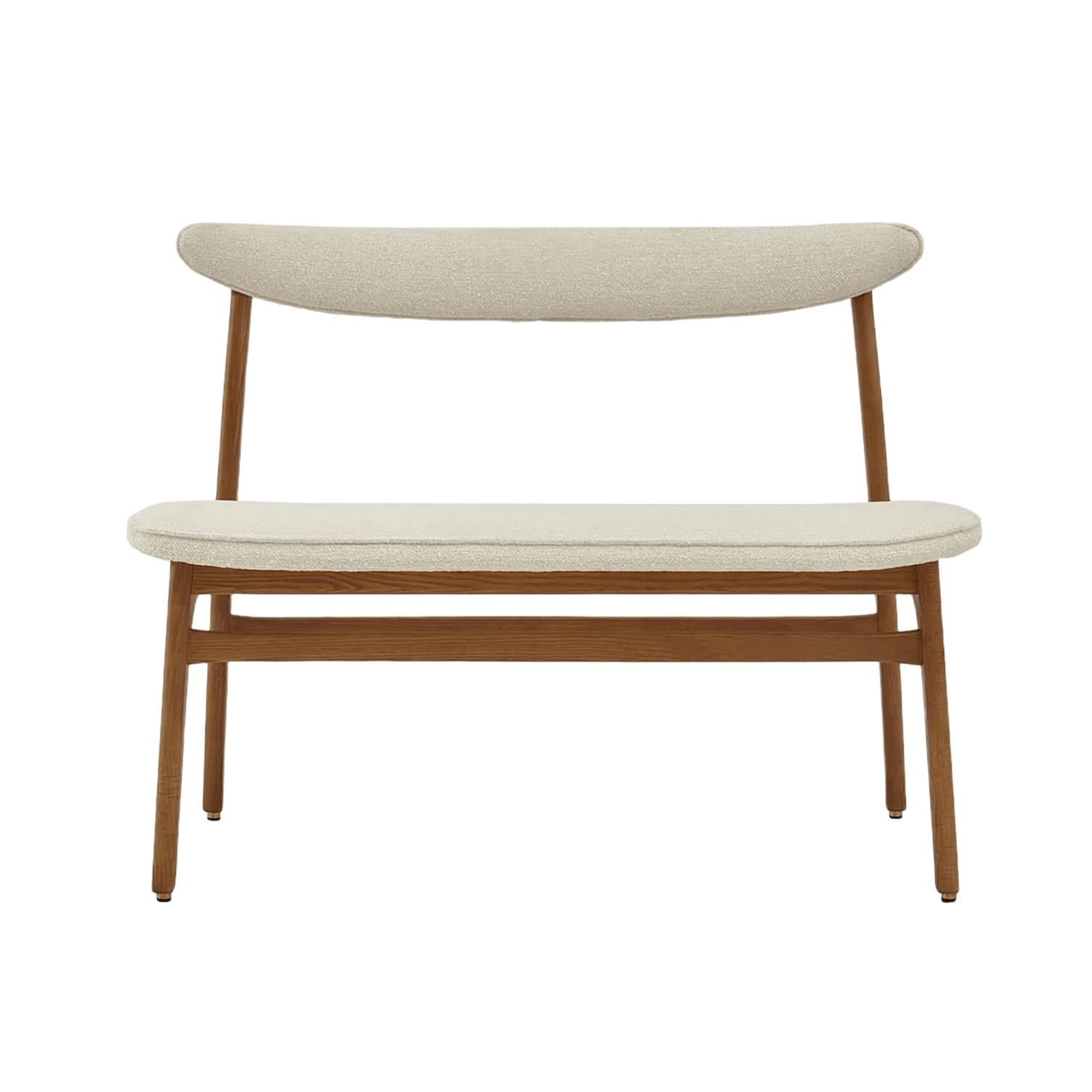 Lehká forma lavice ji činí elegantní a subtilní. Její konstrukce je vyrobena z jasanového dřeva, které jí dodává vznešenost a přirozené kouzlo. Dále mosazné detaily použité na lavici zdůrazňují její nadčasovost a dojem, který vyvolává v každém interiéru.