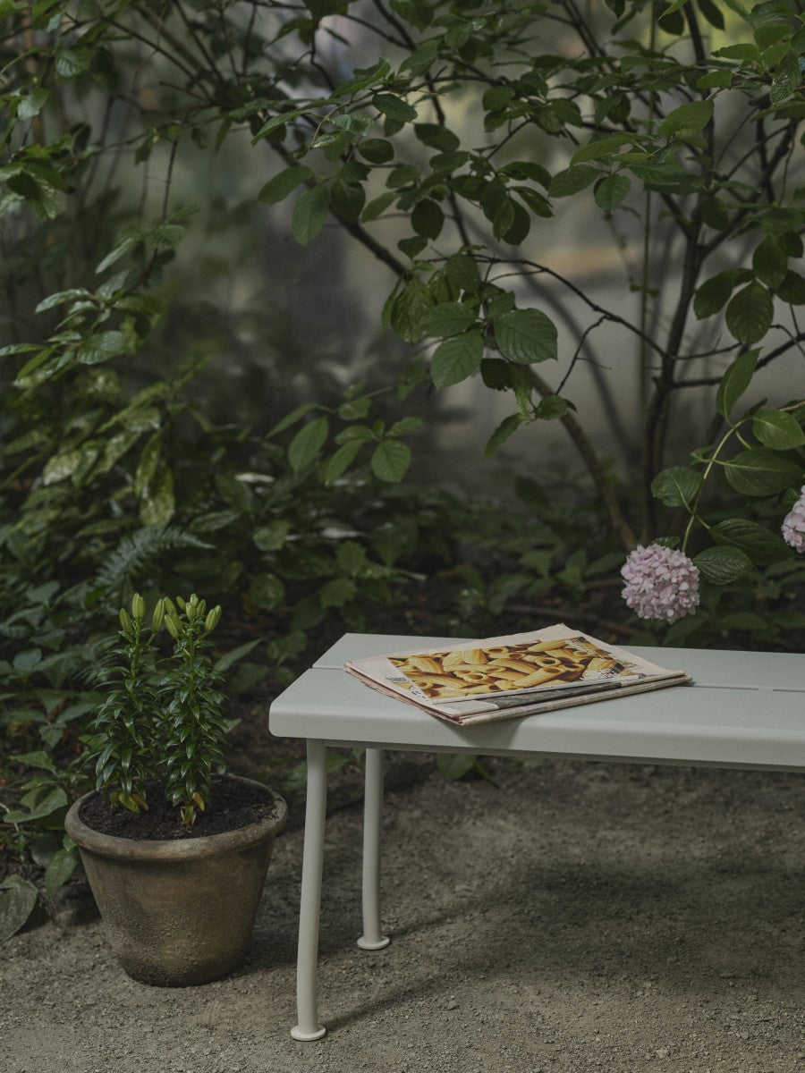 Minimalistická kovová lavice Flaner byla navržena s ohledem na moderní venkovní prostory, ale skvěle se hodí i do interiérů. Její zakřivené nohy, inspirované větvemi stromů, jí dodávají jedinečný vzhled, a provedení z ocelového plechu zajišťuje snadnou údržbu a odolnost vůči povětrnostním podmínkám.