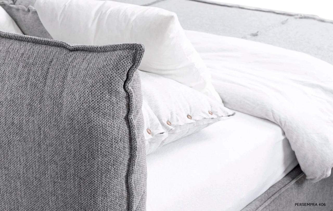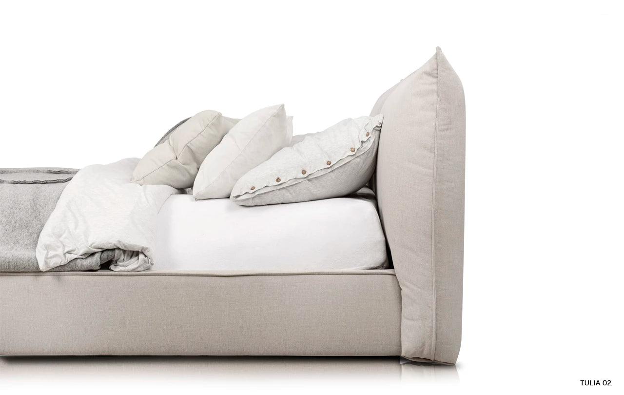 Beżowe łóżko Molia to symfonia wygody i funkcjonalności, gdzie szerokie wezgłowie obejmuje materac, zapewniając nie tylko doskonałe wsparcie dla ciała, ale również wyjątkowy komfort snu. Miękkość tapicerowania oraz delikatność tkanin dostępnych w ofercie Rosanero podkreślają wyrafinowany charakter tego łóżka, czyniąc go nie tylko meblem, ale prawdziwym dziełem sztuki.