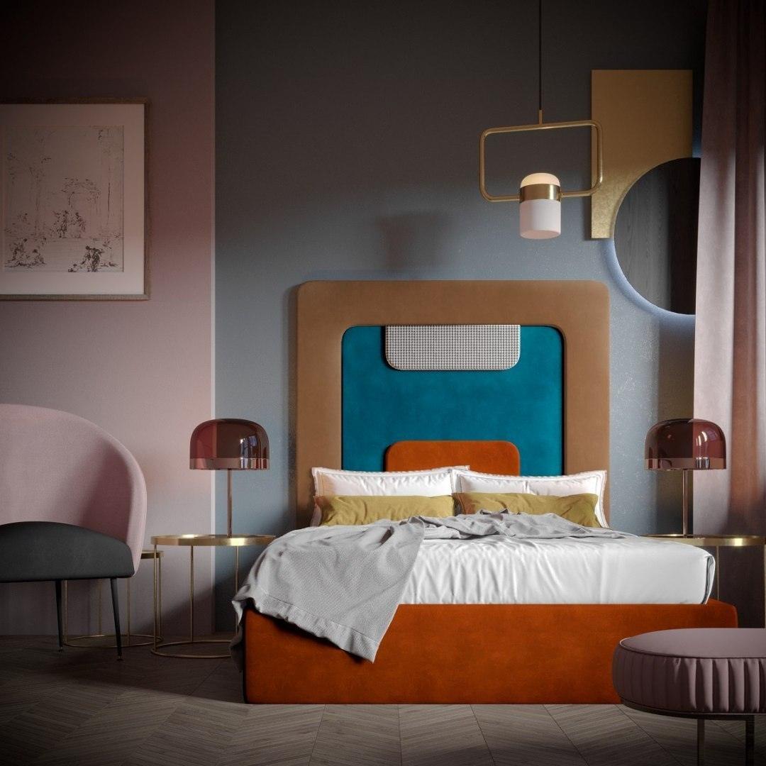 Postel z kolekce Plum to jedinečný projekt Katarzyny Jasyk, který svou kompozicí a tvarem odkazuje na postmoderní styl Memphis. Kombinace odvážných barev a geometrických tvarů vytváří pozornost přitahující, jedinečný design. Celé je potaženo měkkou, sametovou tkaninou, která dodává jemnost a eleganci.