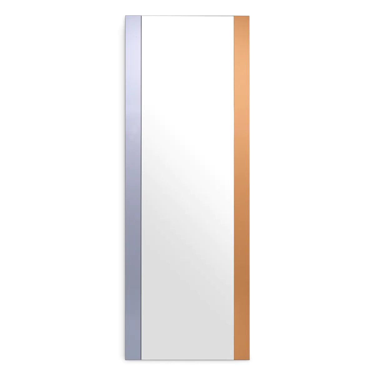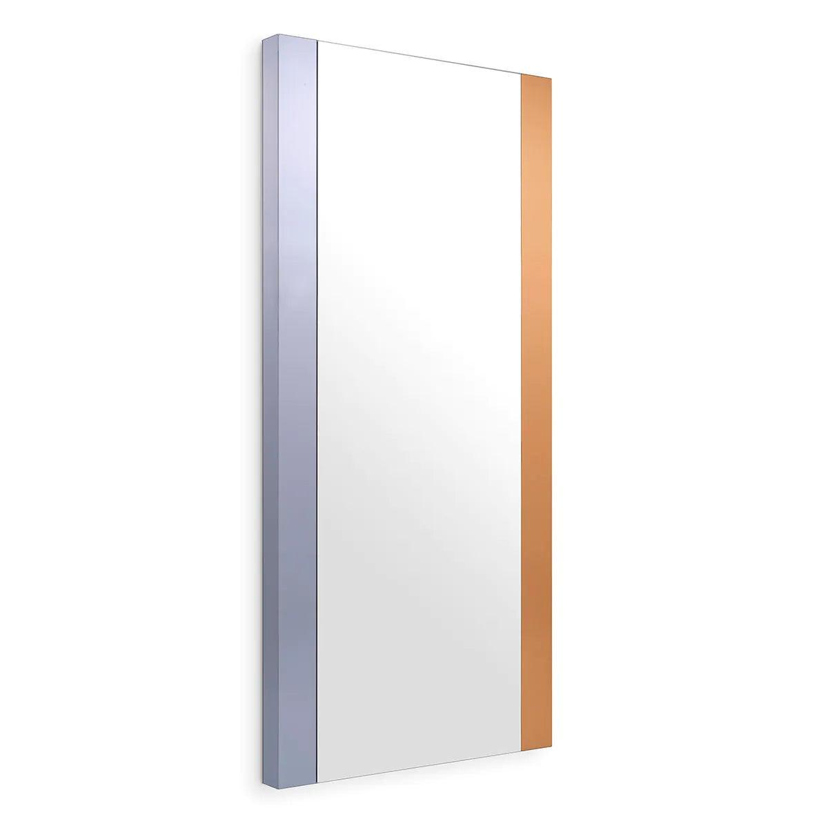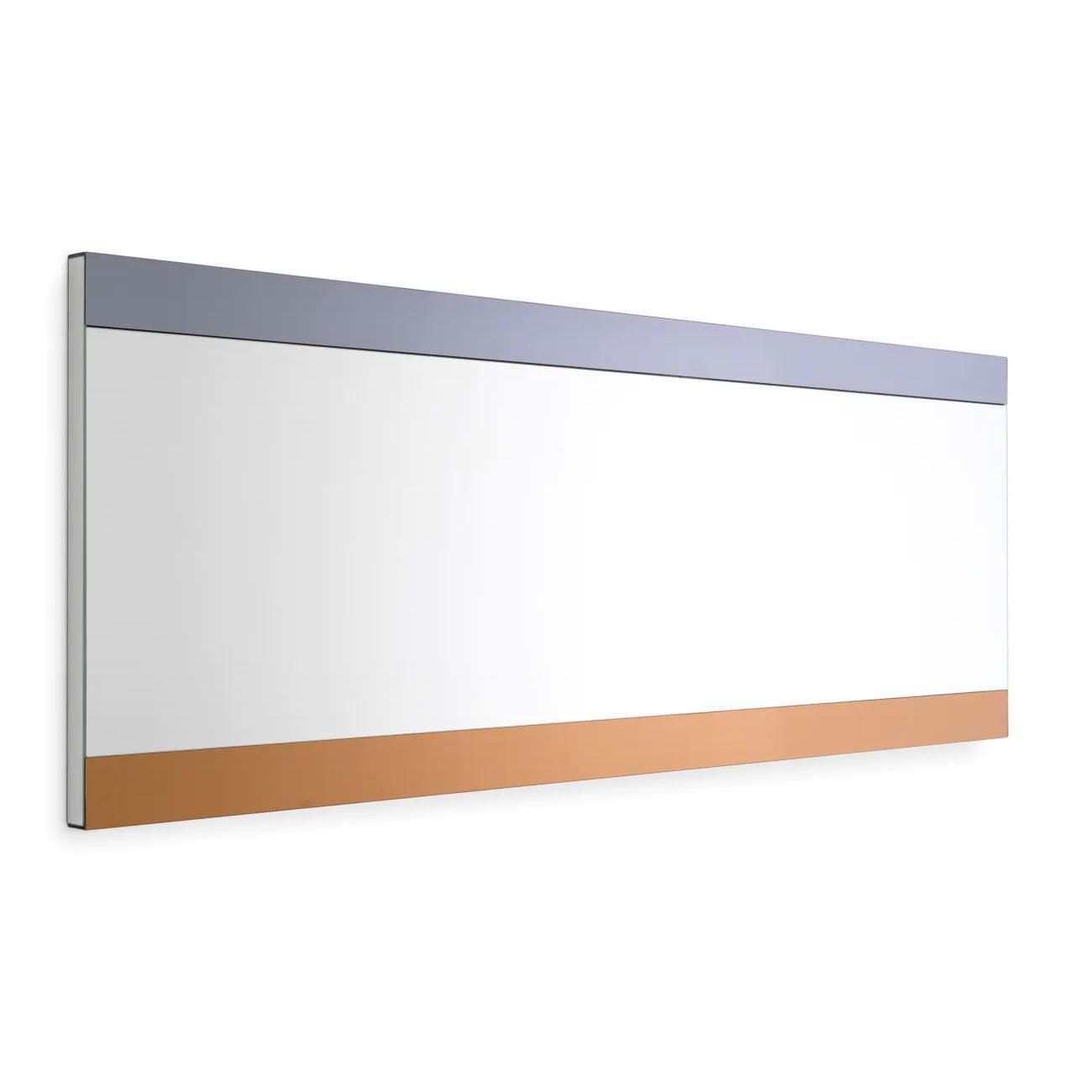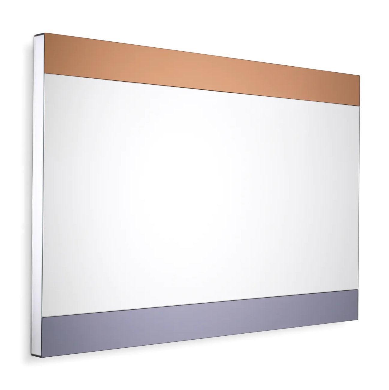 Objevte malé zrcadlo Cevio, které představuje efektní doplněk do moderních interiérů. Místo tradičního rámu má toto zrcadlo dva vertikální pruhy: jeden vyrobený z kouřového zrcadlového skla a druhý z jantarového zrcadlového skla. Tyto jemné detaily dodávají drobné akcenty luxusního stylu jeho skromnému vzhledu.