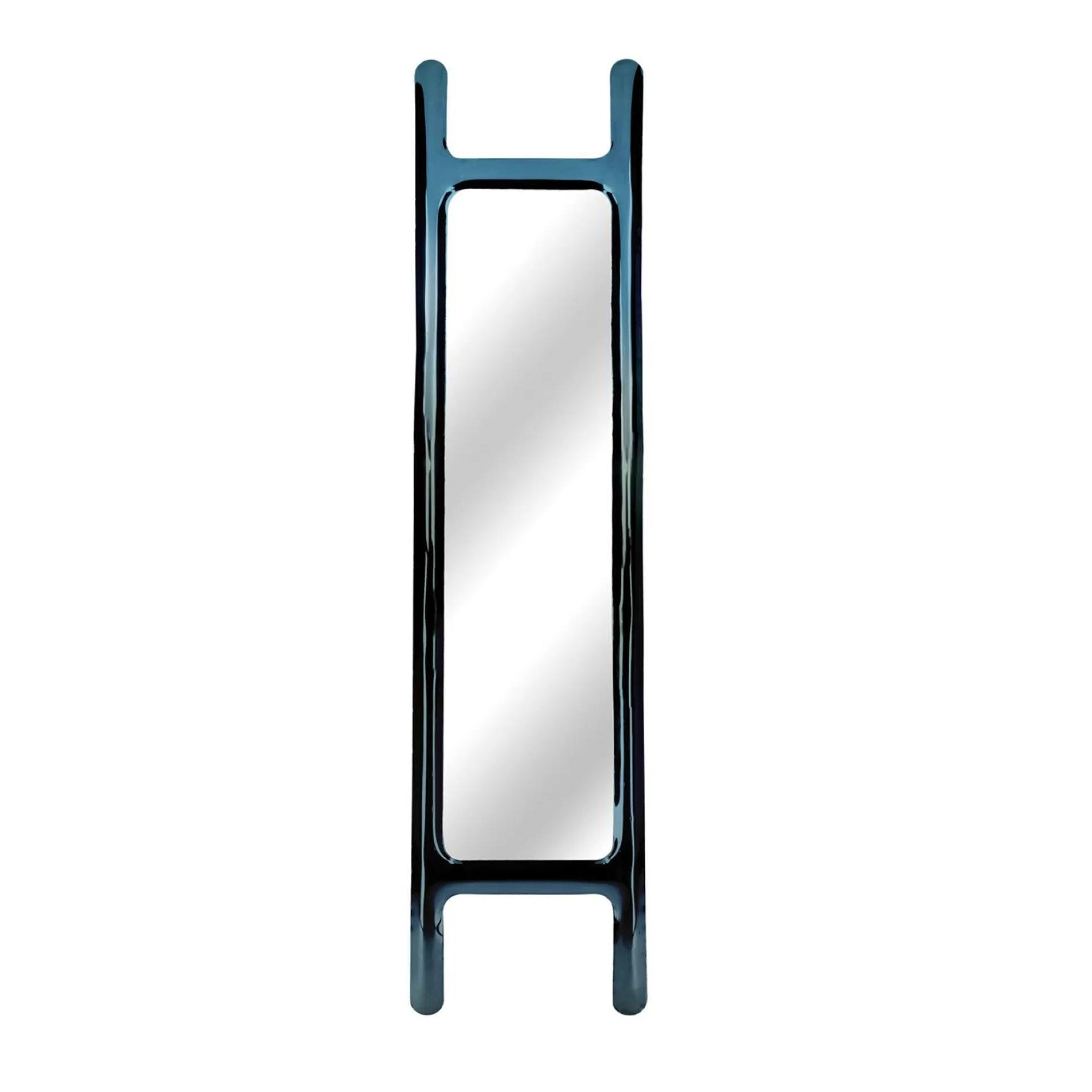 Modré zrcadlo Drab je neobyčejné spojení funkčnosti a moderní estetiky, které přináší inovativní přístup k klasickému vzoru žebrového rámu. Je součástí rodiny Drab, která přidává nové aspekty k známé a oblíbené konstrukci.