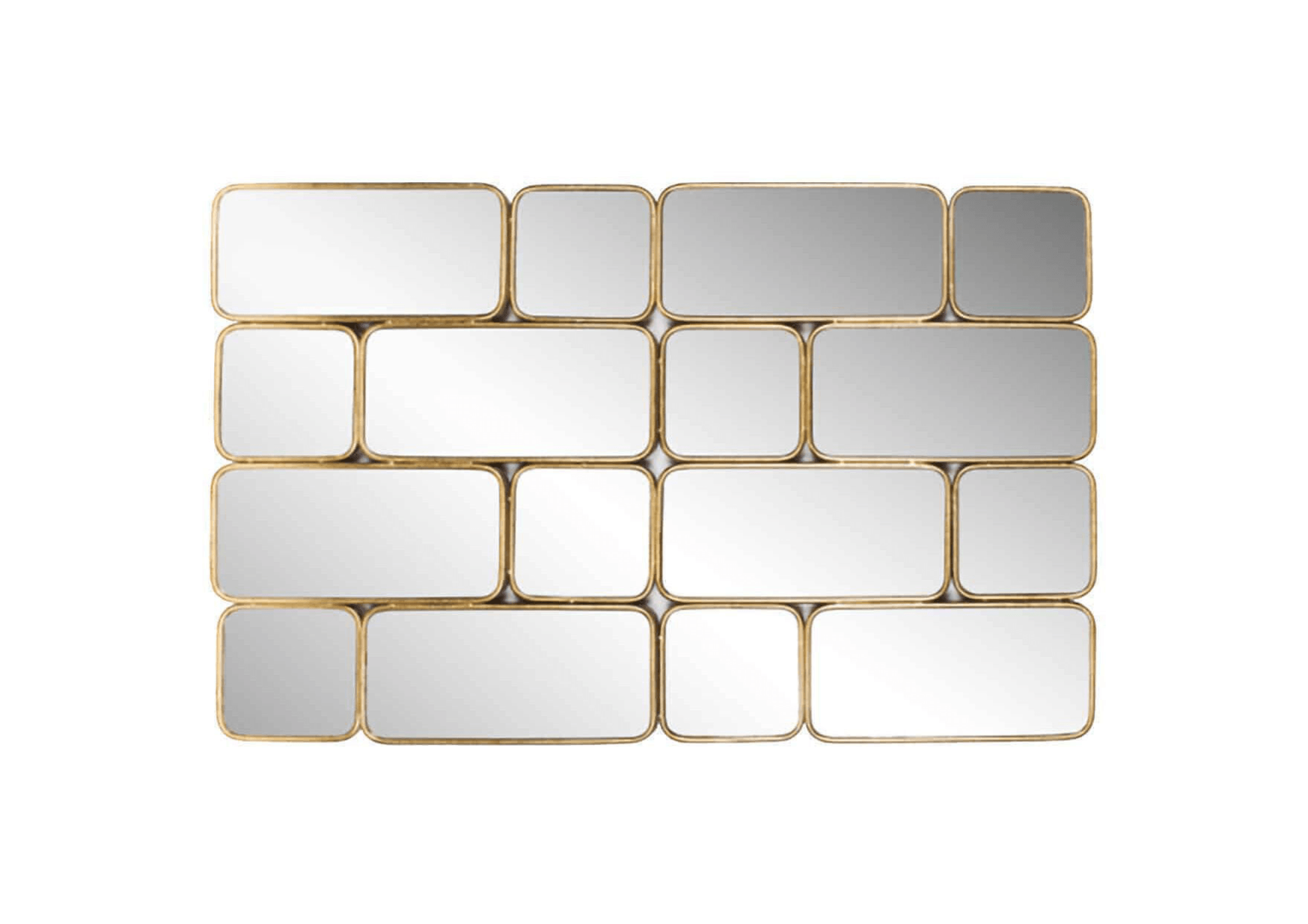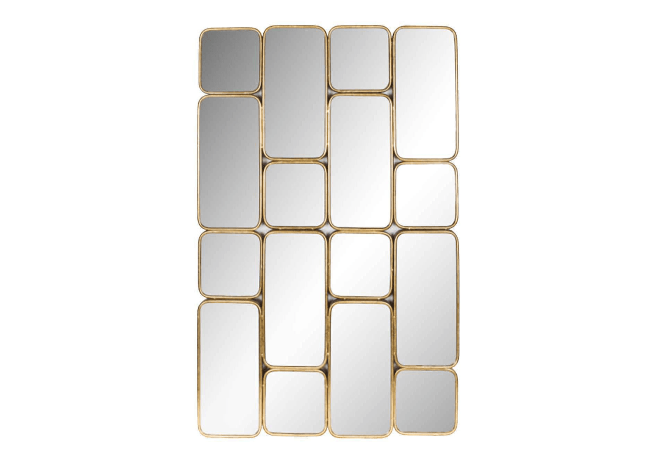Zrcadlo Birche je jedinečné dílo, které se skládá z 16 propojených obdélníkových a čtvercových zrcadel, a to vše je obklopeno elegantními zlatými rámy. Tento moderní a fascinující design se skvěle hodí do mnoha různých interiérů, dodávajíc jim výjimečný charakter.