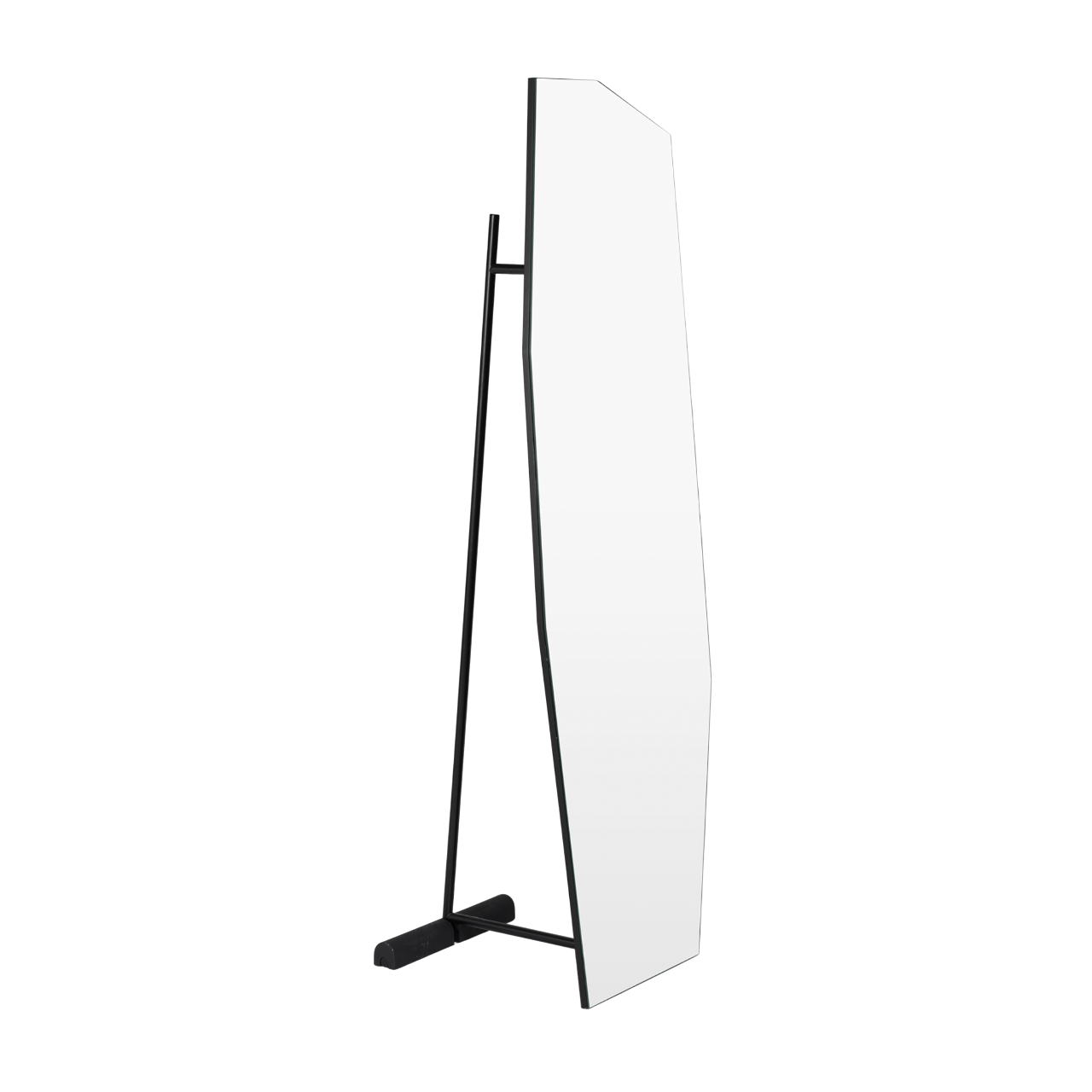 Zrcadlo Shard Free Standing je jedinečný prvek, který přináší moderní a odvážný akcent do každého interiéru. Jeho název pochází z inspirace, kterou představují ostré, surové hrany rozbitých kusů keramiky, skla a kamenů. Asymetrická forma zrcadla mu dodává jedinečný charakter, a ocelový rám práškově lakovaný umožňuje zavěšení oblíbeného oblečení či kabátů na zadní straně zrcadla, spojující funkčnost s estetikou.