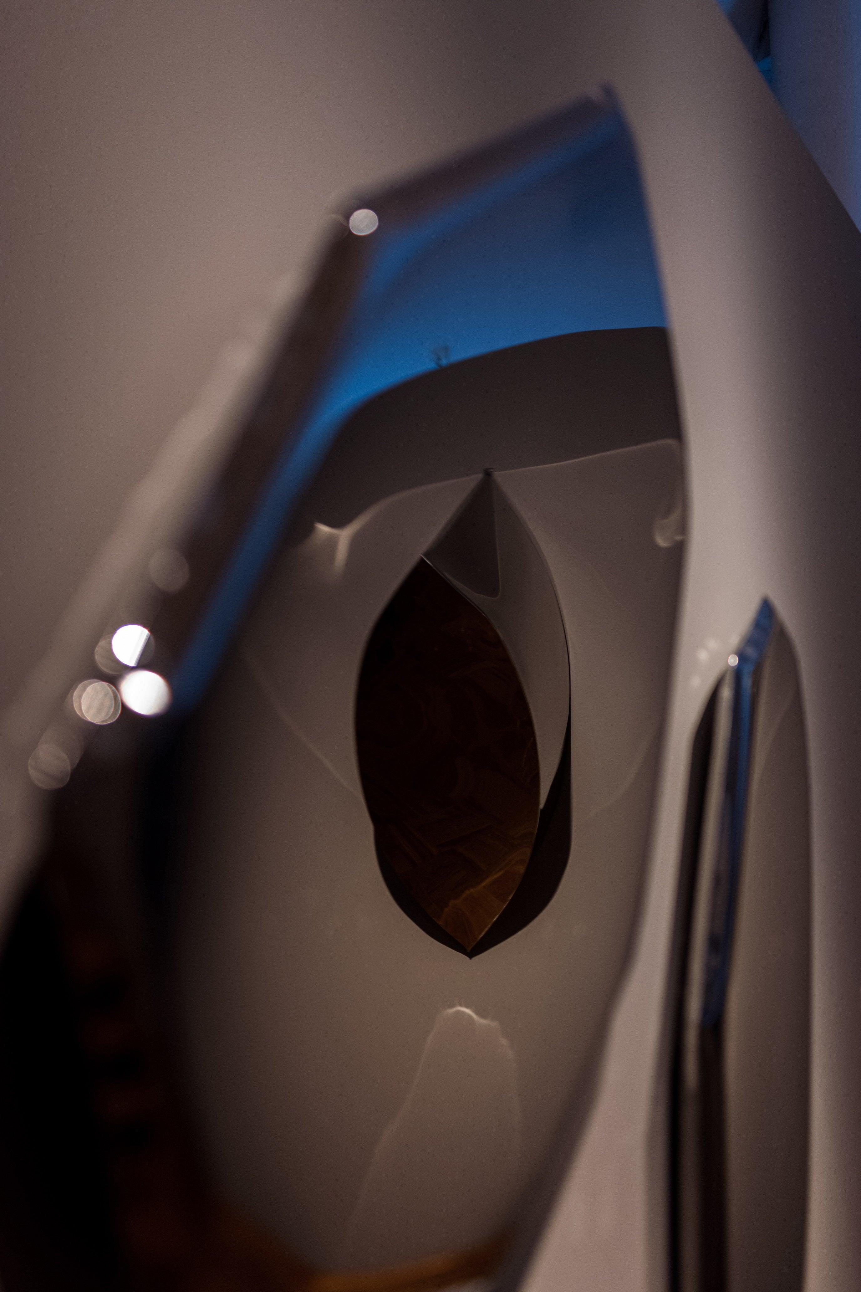 Neregulární deformace na okrajích tafle jsou jedinečné a neopakovatelné. Jejich vznik je výsledkem odvážného experimentu s kovovými materiály, kde volné deformace kovu pod tlakem vzduchu dodávají každému kusu jeho nezaměnitelný charakter. Každý z těchto objektů je unikátní, nese v sobě příběhy o odrazech a vyprávění o odrazech, které jsou zároveň tajemné a lákavé.