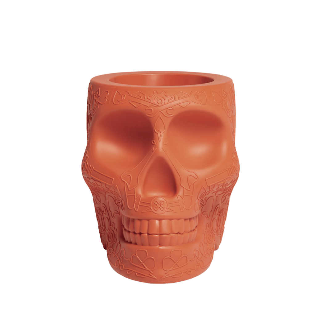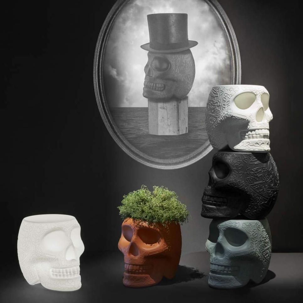 Mexiko avantgardní květináč, navržený studii Studio Job ve tvaru lebky s grafickým vzorem na povrchu. Tento projekt je inspirován svátkem zesnulých - Día de los Muertos, který se v Mexiku slaví s velkou pompou. Tato barevná a hudební událost má nesmírně radostný charakter, což se tvůrcům podařilo zachytit v designu.