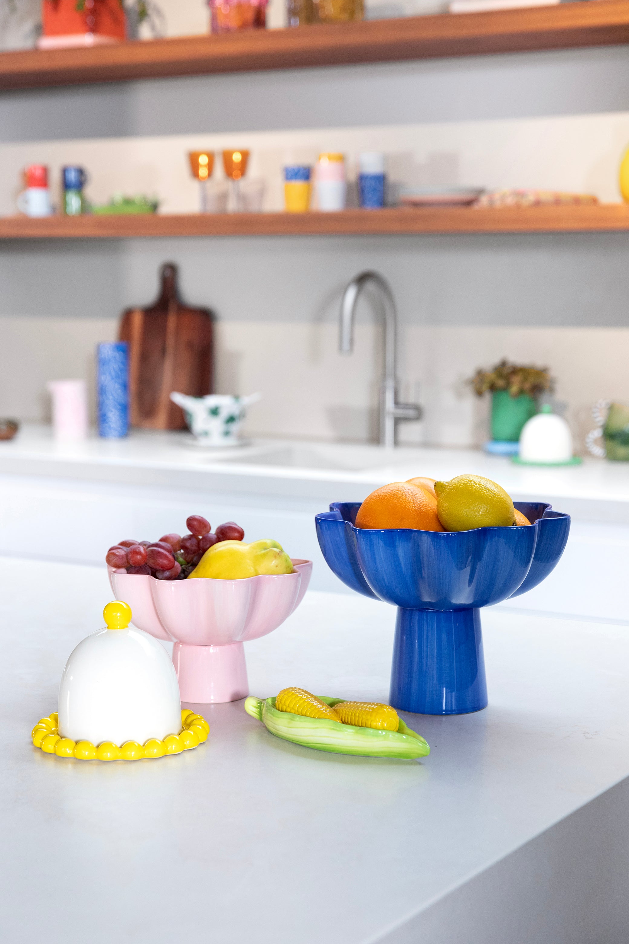 Mísa Sun je dokonalým způsobem, jak elegantně vystavit zdravé ovoce nebo zeleninu. Její charakteristický tvar a odvážná modrá barva přitahují pozornost a činí mísu středobodem stolu nebo pracovní desky. Díky jednoduchosti formy spojuje funkčnost s moderním designem, přinášejíc do interiéru svěžest a harmonii.
