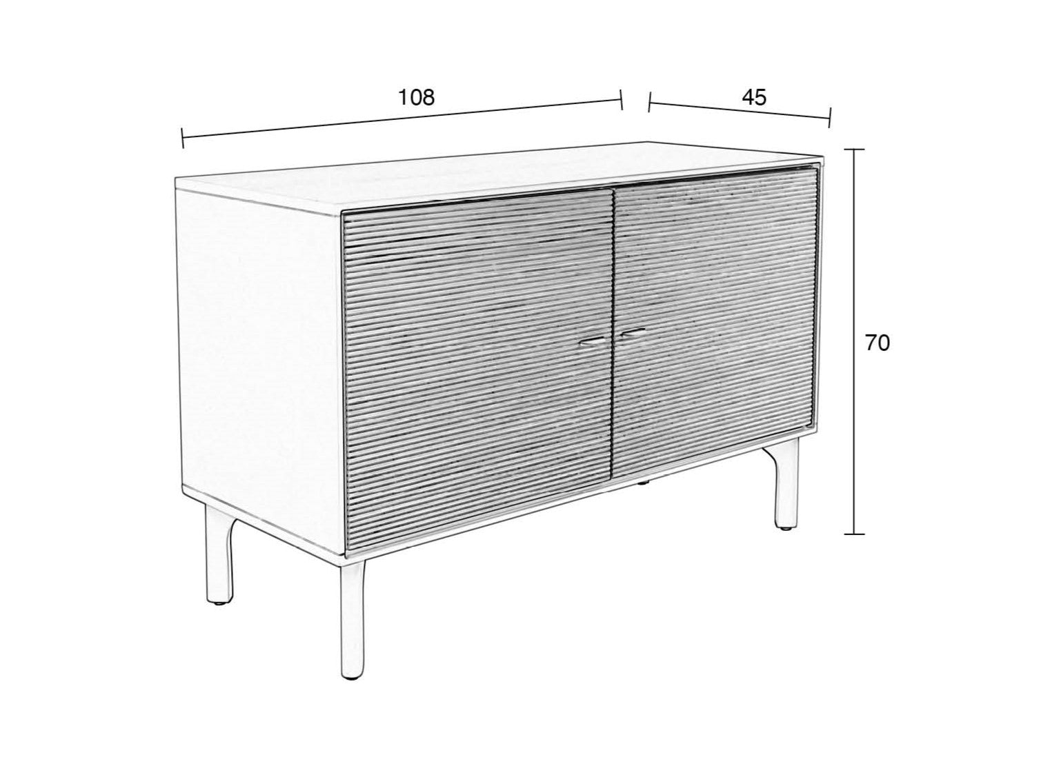 Kredenc Morning má dvoje dveře a dvě police uvnitř. Objevte řadu ve třech velikostech: komoda, skříňka a noční stolek.