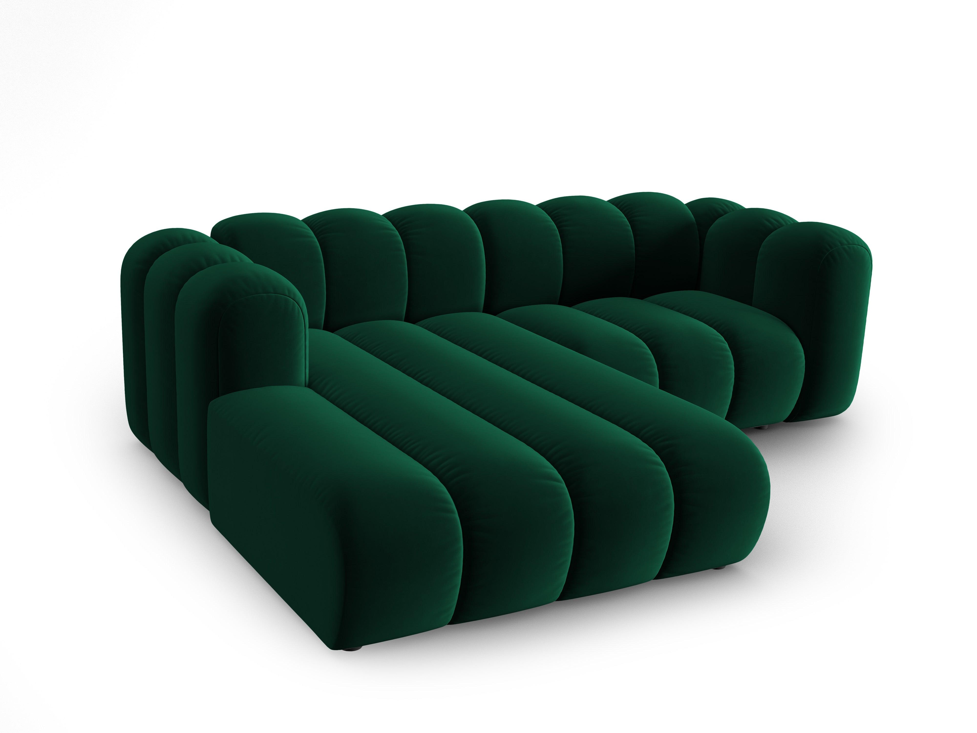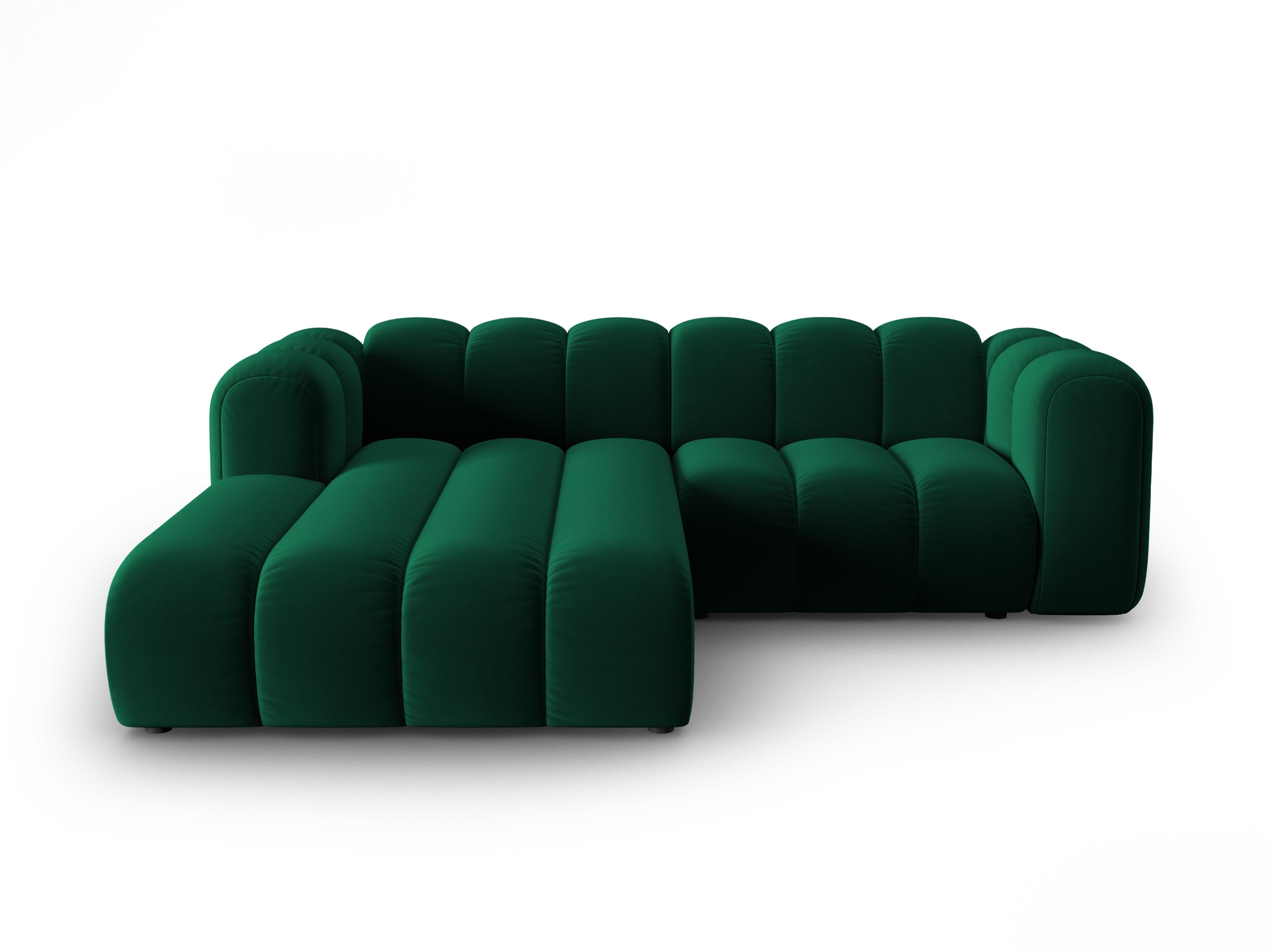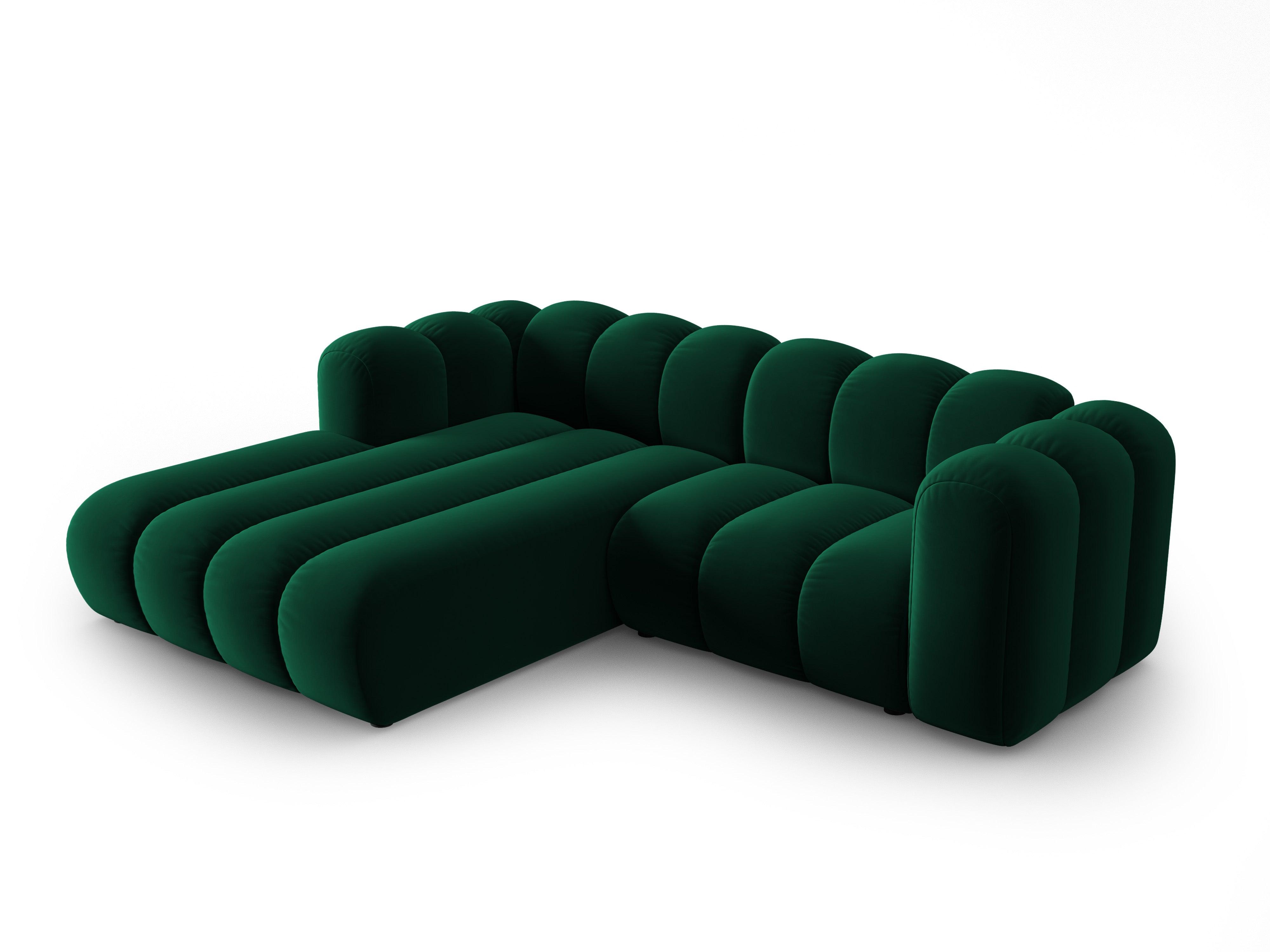 Sametový rohový gauč pro 3 osoby levý LUPINE v lahvově zelené barvě