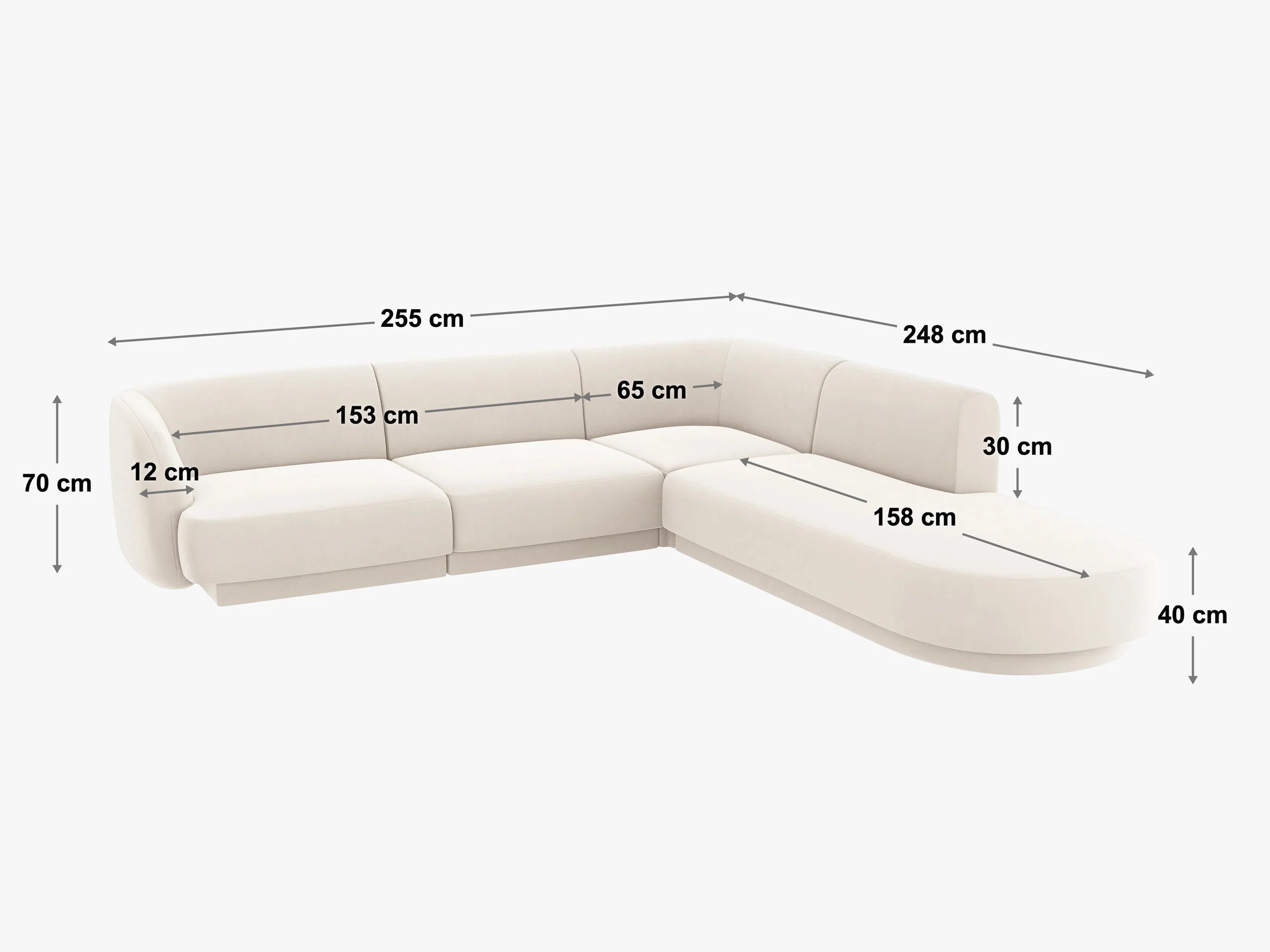 Rohová sedací souprava pro šest osob Miley se vyznačuje zaoblenými tvary, které dokonale zapadají do nejnovějších trendů interiérového designu. Neobyčejné pohodlí jde ruku v ruce s elegantní, minimalistickou formou. Jemné opěradlo plynule přechází do profilovaných područek, což dodává celému projektu soudržnost. Co víc, poskytuje také správnou oporu při sezení či ležení.