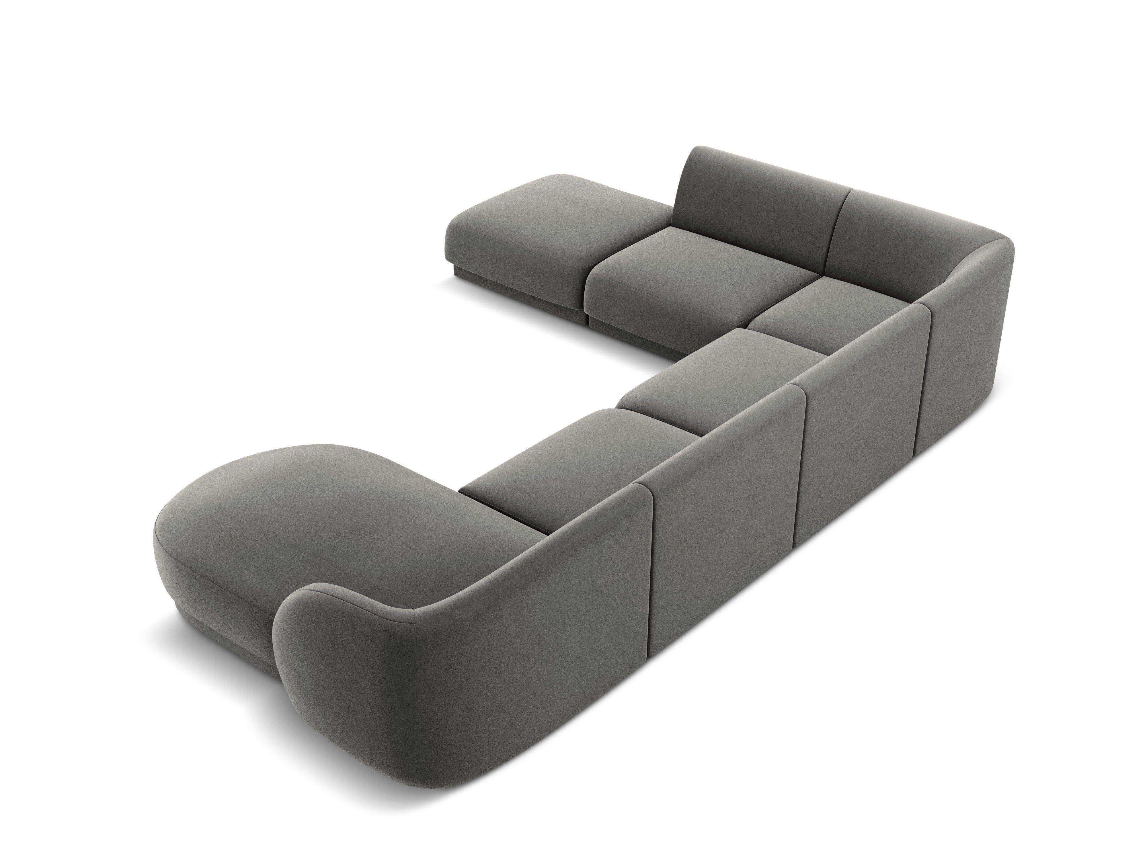 Sedačka sametová 6-osobová ve tvaru U levostranná MILEY světle šedá