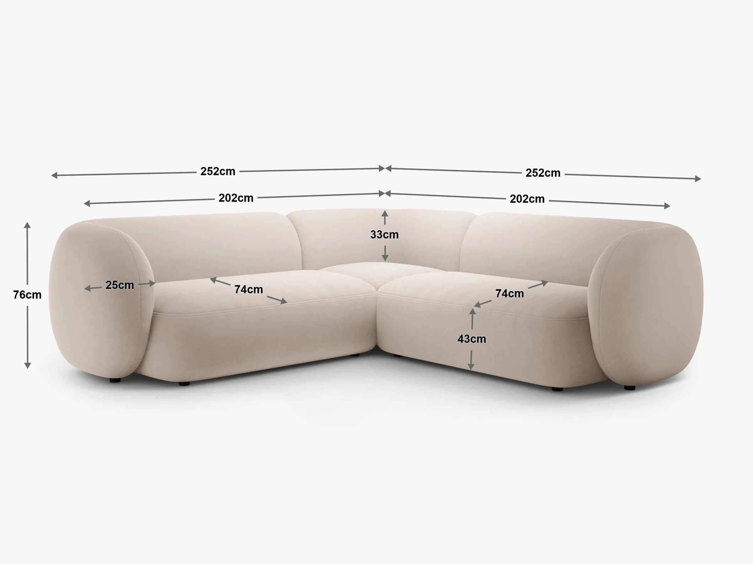 Model byl vyroben v Evropě s péčí o každý detail, což zaručuje trvanlivost a pevnost konstrukce. Roh je potažen tkaninou boucle Baloo, která se vyznačuje výraznou strukturou a neobyčejnou odolností proti oděru. Přírodní melange a zkroucený úplet dodávají tkanině jedinečný charakter, a přitom je příjemná na dotek a bezpečná díky certifikátu Oeko-Tex®. To je ideální volba pro ty, kteří hledají nábytek spojující eleganci s funkčností.