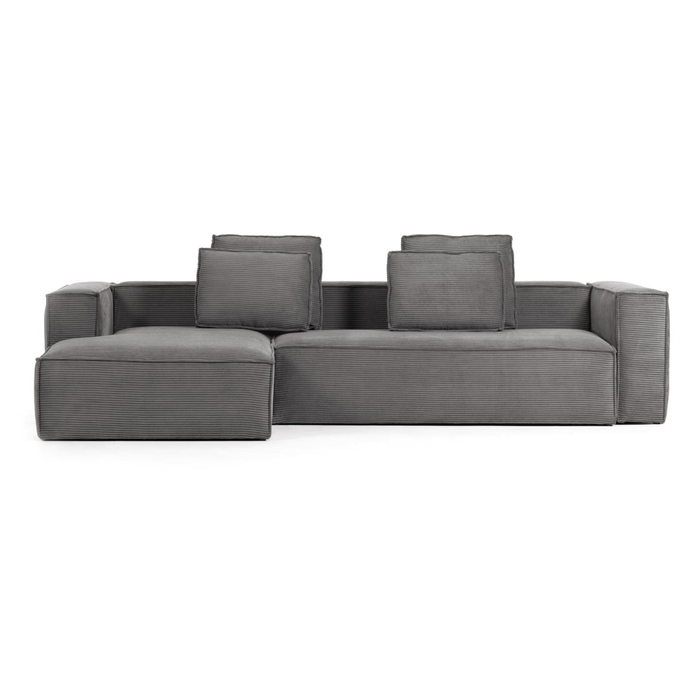Šedý štruksový rohový gauč pro 4 osoby BLOK, levý