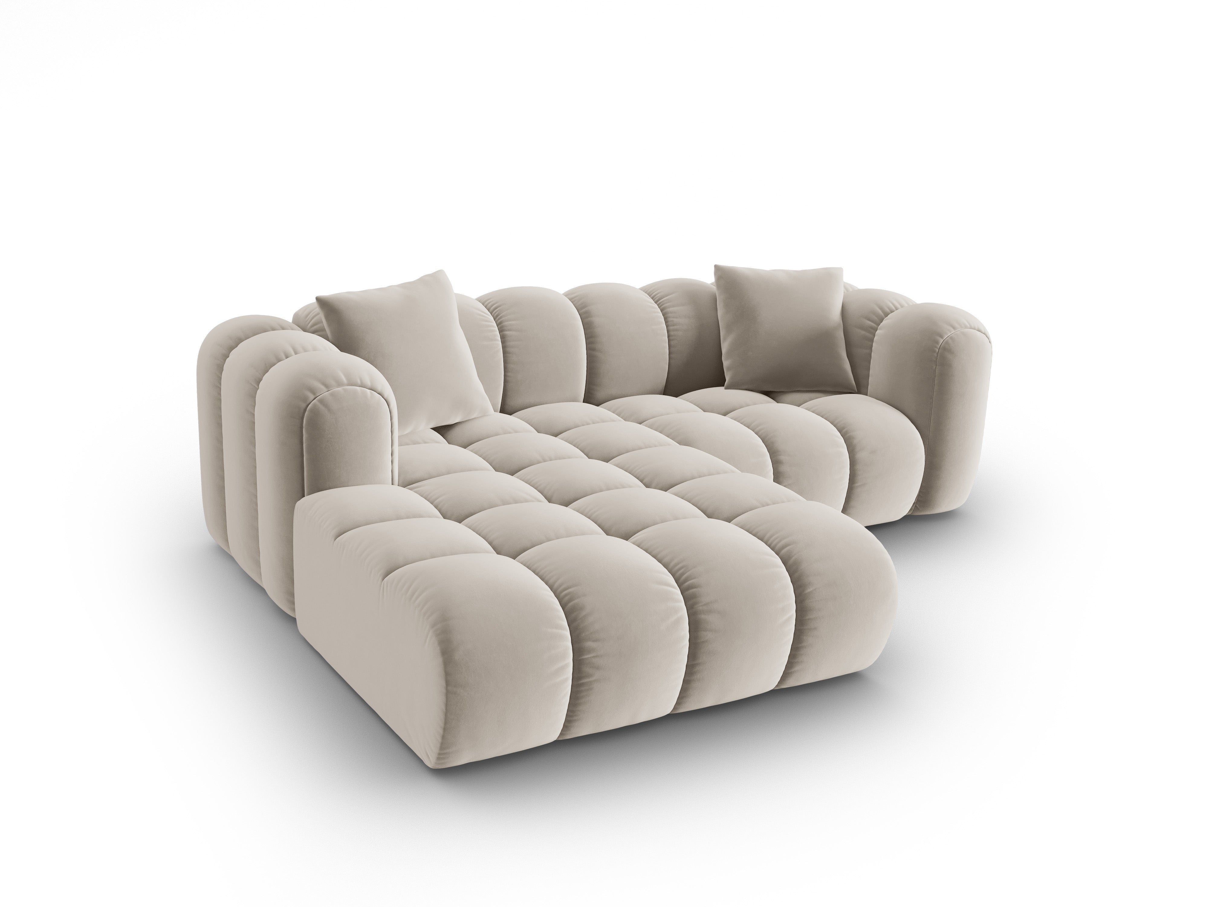Sametový rohový gauč pro 3 osoby levý ASTRO ecru