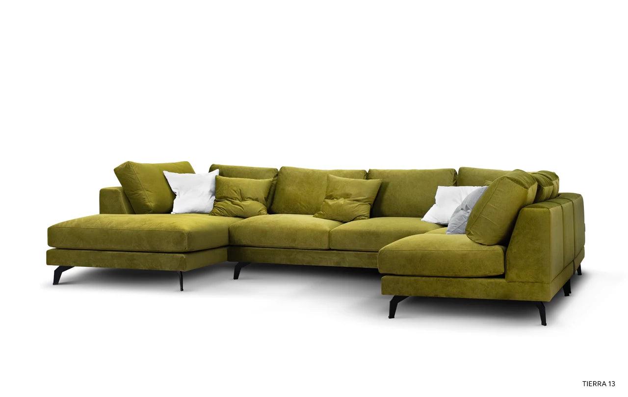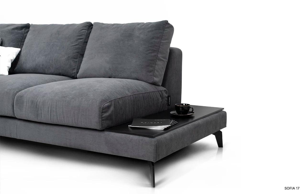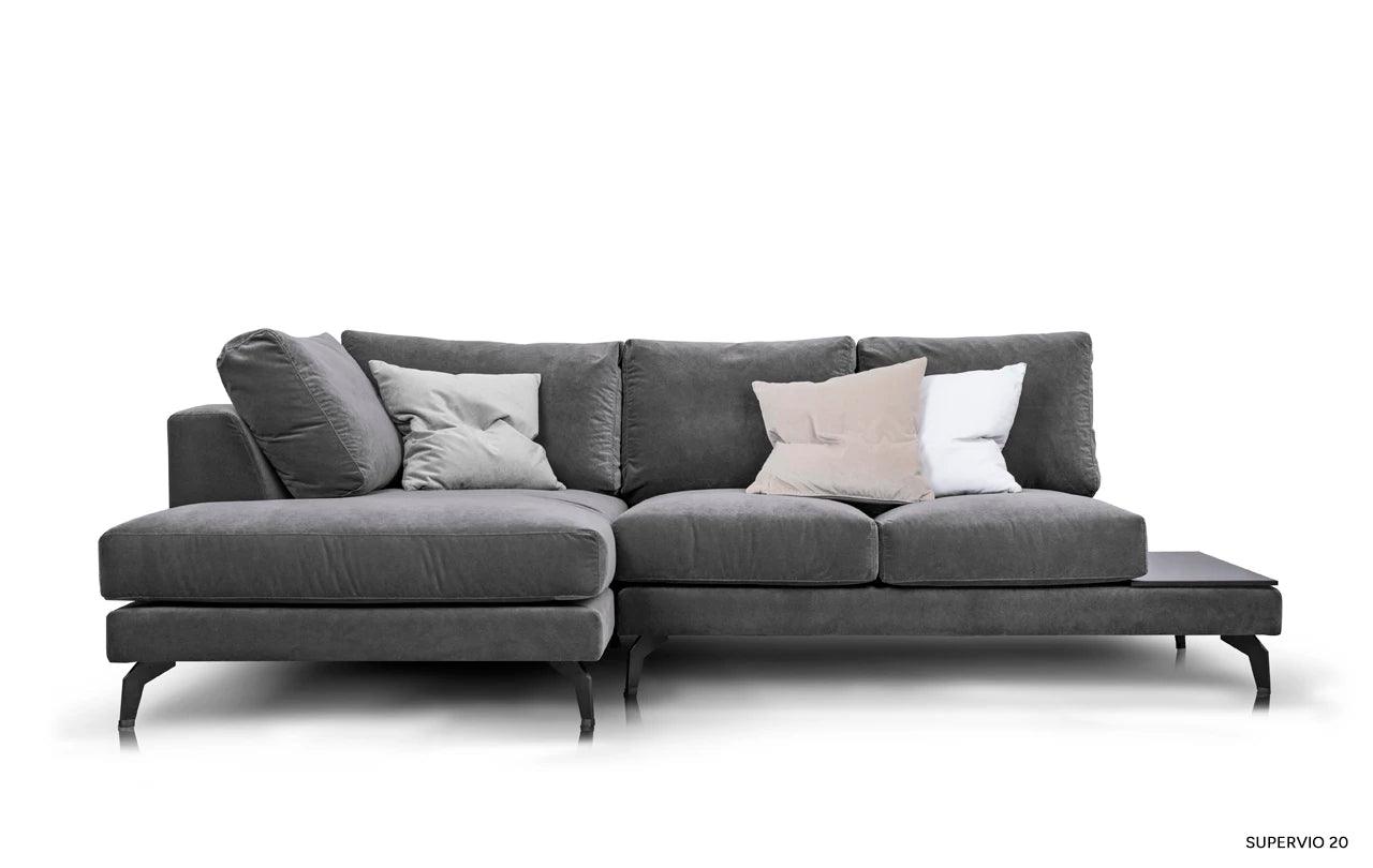 Rohový gauč Air nejenže okouzluje svým vzhledem, ale také nabízí výjimečný komfort při používání. Díky výplni z vysoce elastické pěny a přírodního peří a speciálním popruhům, nábytek získává na pružnosti a měkkosti. To zajišťuje nejen estetický vzhled, ale také vynikající oporu pro tělo během odpočinku.