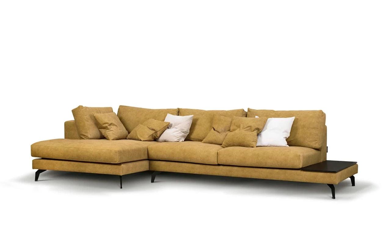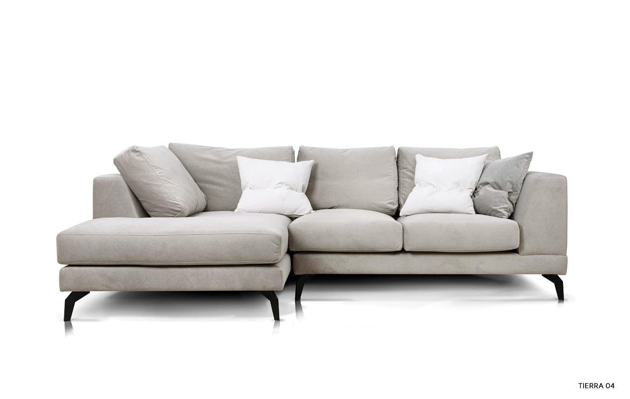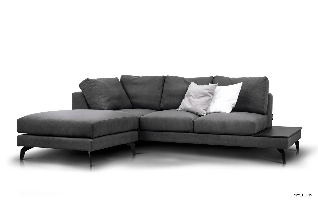 Levý rohový gauč Air je dokonalou kombinací estetiky, funkčnosti a komfortu, vytvářející ideální rohový gauč, který splní očekávání i těch nejnáročnějších uživatelů. Jeho atraktivní vzhled je výsledkem harmonického spojení modernosti s lehkostí, dosaženého díky štíhlým, kovovým nohám.