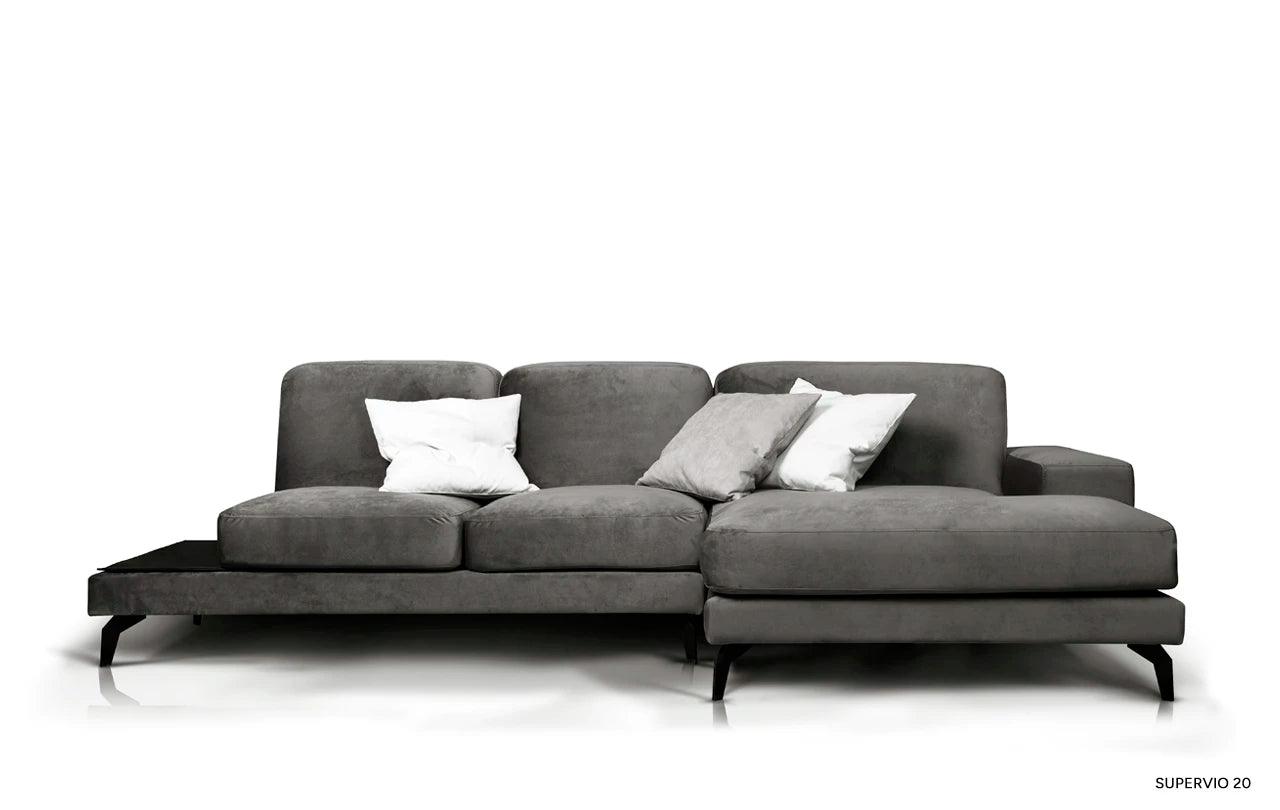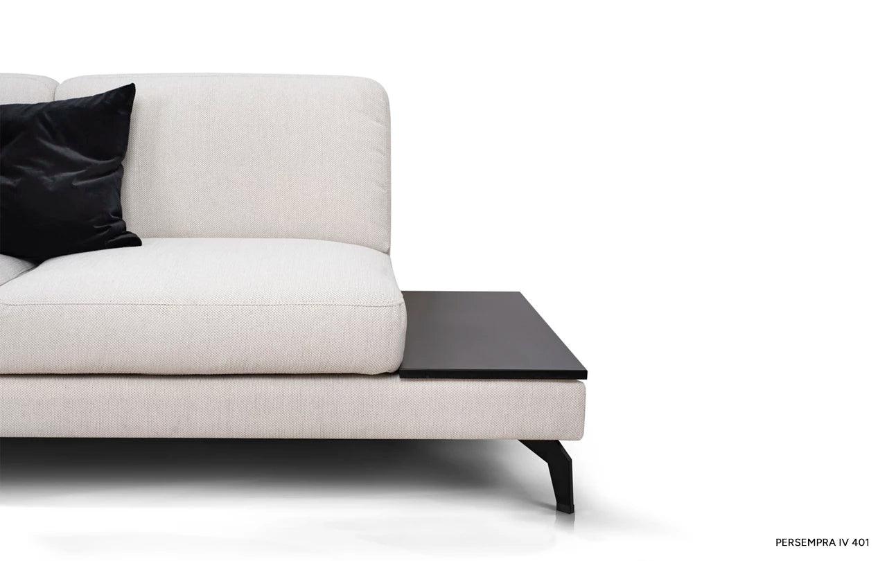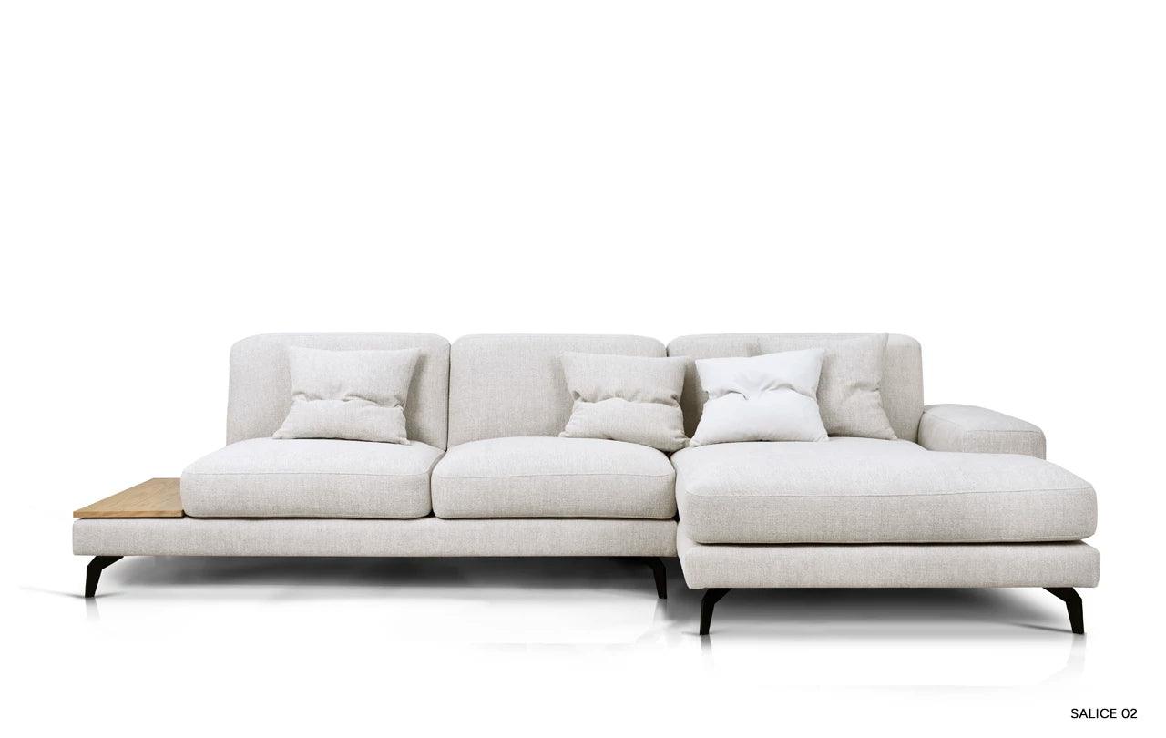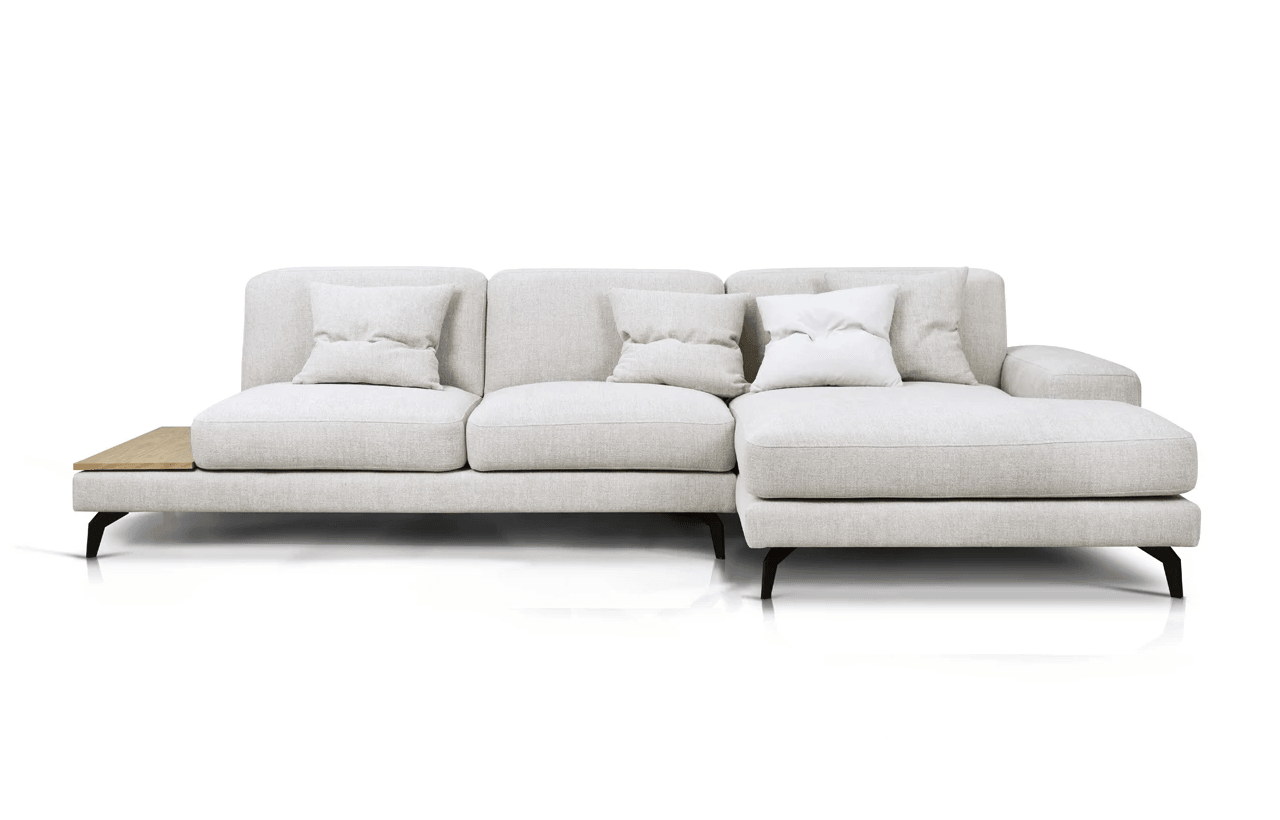 To, co odlišuje rohový gauč Enjoy od ostatního nábytku, je inovativní možnost přeměny jednoho z polštářů na praktický stůl. Tato funkčnost umožňuje volně postavit šálek s oblíbeným nápojem nebo noční lampičku, což činí gauč ještě univerzálnějším.