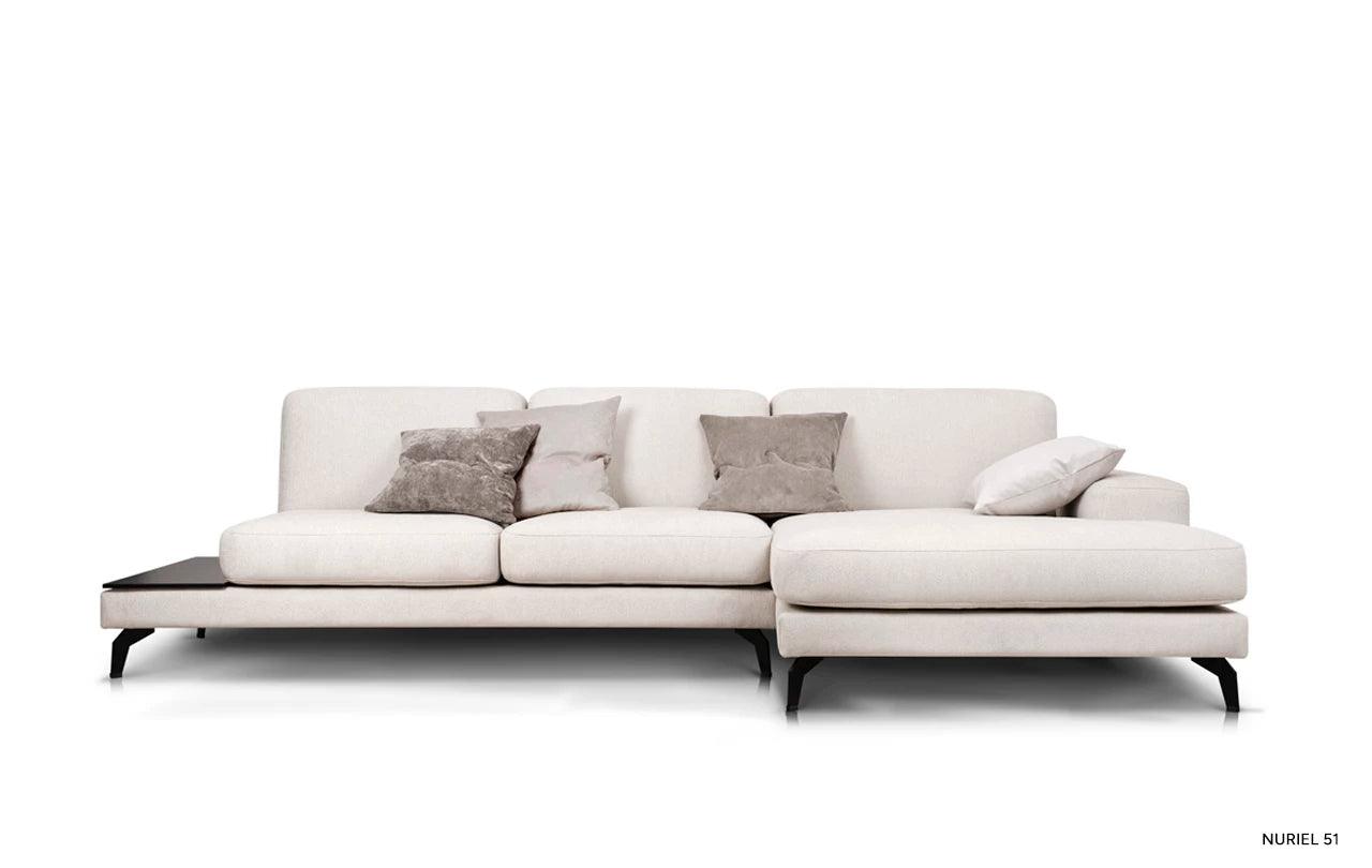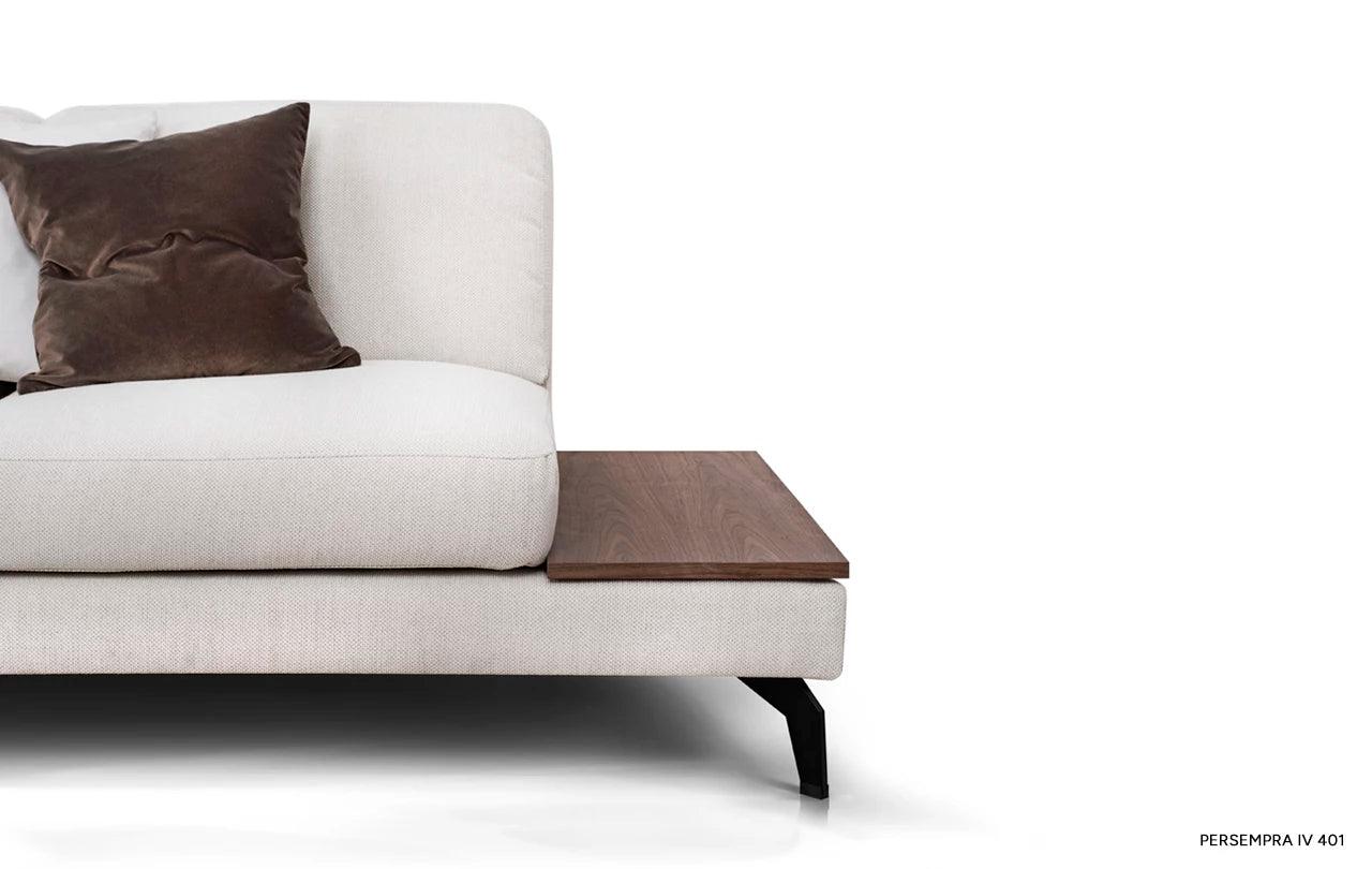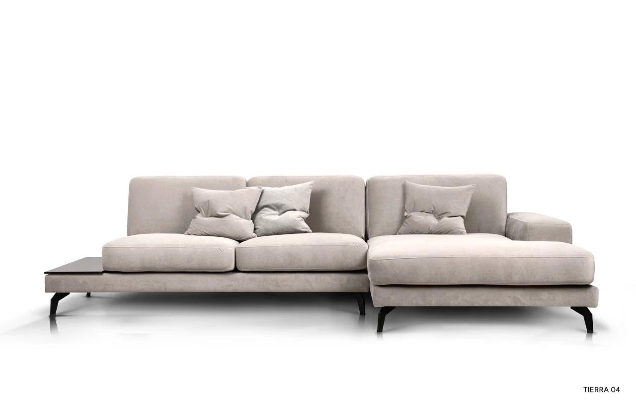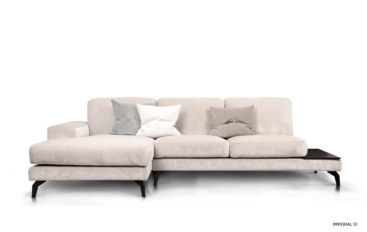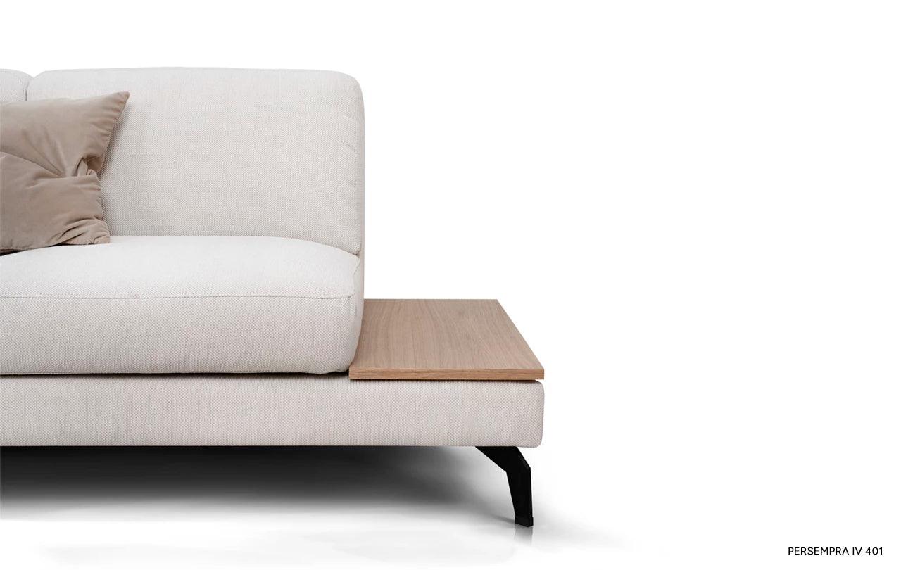 To, co odlišuje rohový gauč Enjoy od ostatního nábytku, je inovativní možnost přeměny jednoho z polštářů na praktický stůl. Tato funkčnost umožňuje volně postavit šálek s oblíbeným nápojem nebo noční lampičku, což činí gauč ještě univerzálnějším.