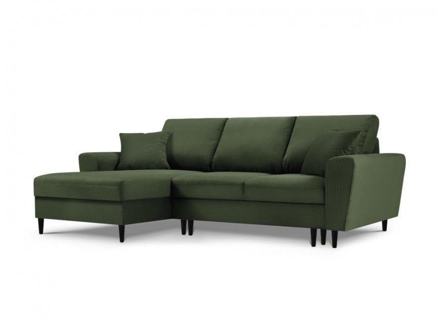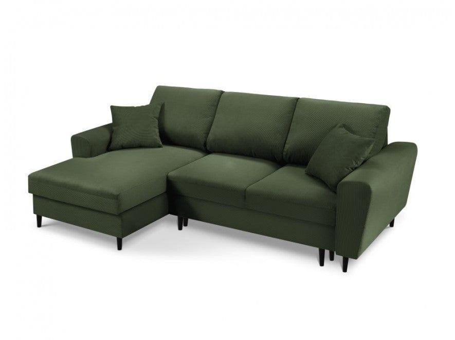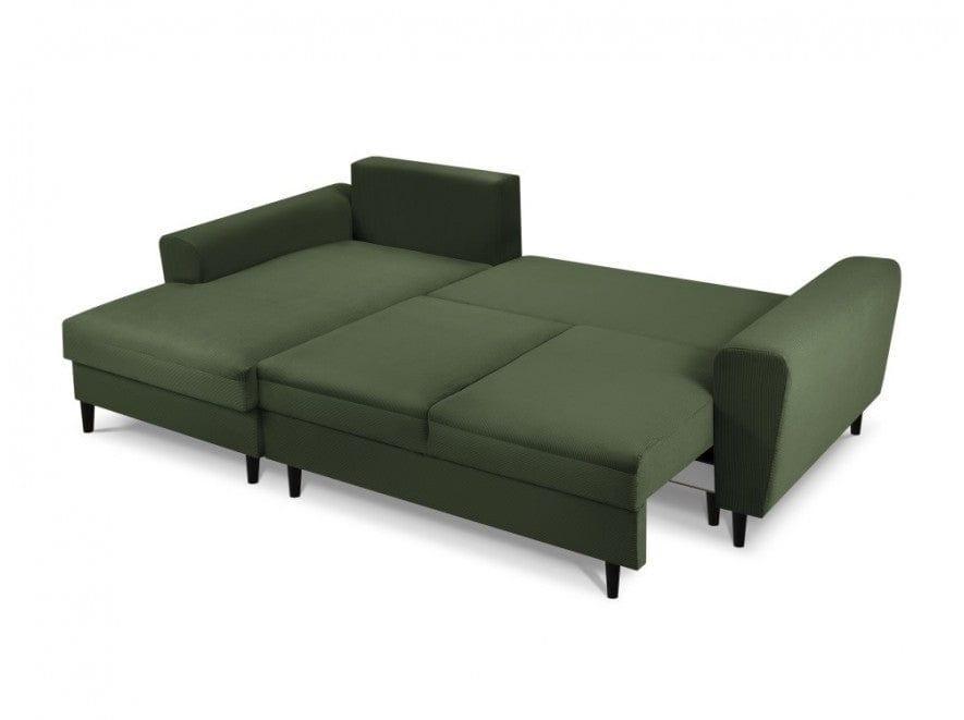 Rohová sedačka s funkcí spaní KYOTO z tmavě zeleného štruku, levostranná