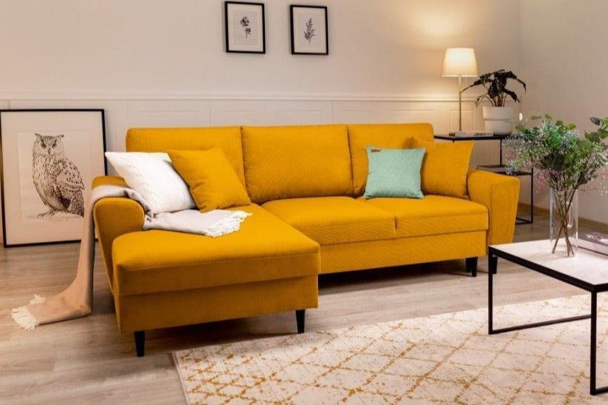 Žlutý štruksový levostranný rohový gauč s funkcí spaní KYOTO